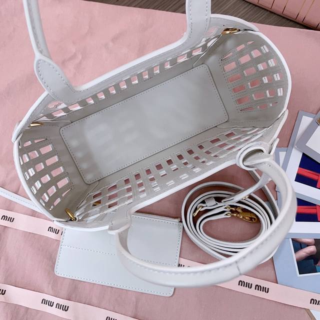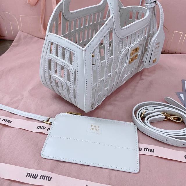 5Ba294,Mium新品菜篮子,柔软Nappa皮革手袋,采用精致编织图案和别致构造设计,彰显夏日风情,复杂的工艺体现Miu系列精致优雅之美,可拆卸可调节皮革长肩带,内配拉链小包挂饰,实用性强,上班通勤,外出野餐度假都是绝佳选择