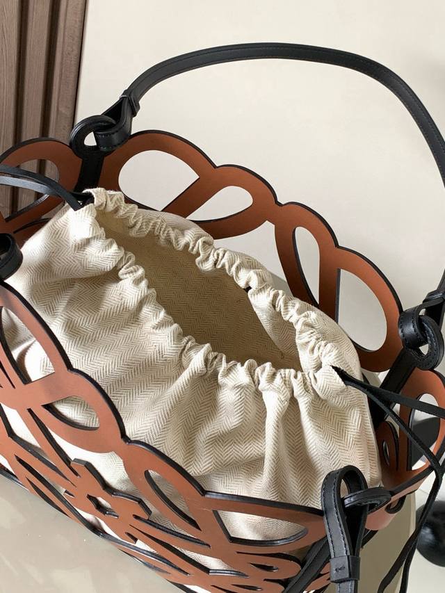 小号牛皮革镂空 Anagram Tote 手袋真的长在我的审美上,镂空黑色大Logo,内置麻质内袋,两边有可以收缩的细绳,腋下背完全不是问题酷帅酷帅,这款多功能 ,百搭休闲容量感人的同时还带着时尚感Tote 手袋采用 Anagram 图案镂空牛皮革制成,并配有牛皮革提手和人字形棉帆布束带内袋这个版本为小尺寸版本不多不少 时髦度刚刚好的L0Ewe镂空包一款实用性和颜值兼具的Tote有两个配色,上身试背之后还是选择了棕色镂空不挑季节主要是和衣服都能搭容量基本上日常出门的东西都能塞的下*肩挎或顶部提