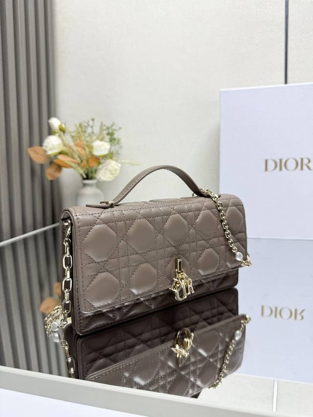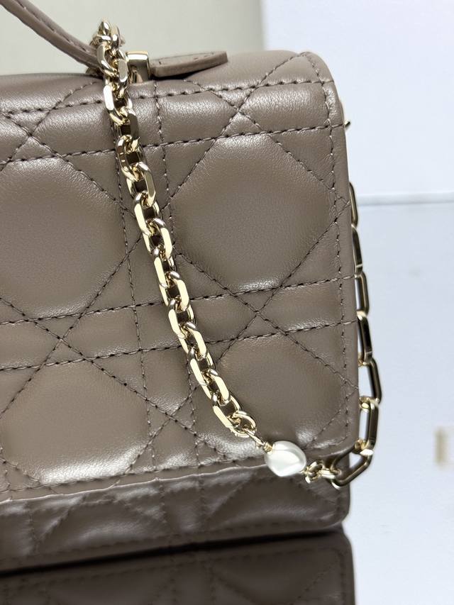 这款手拿包是本季新品顶部搭配手柄,优雅实用,令 Lady Dior 系列更加丰富。采用黑色羊皮革精心制作,饰以藤格纹,翻盖设计搭配D.I.O.R.吊饰提升格调。款式实用,设有多个隔层和卡槽,可收纳各种日常用品,是日装和晚装的理想良伴。顶部手柄,可拆卸链条以珠饰点缀更显精致,可手提或斜挎。