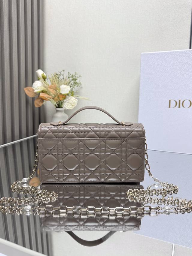 Lady Dior 珍珠手拿包 巧克力色羊皮