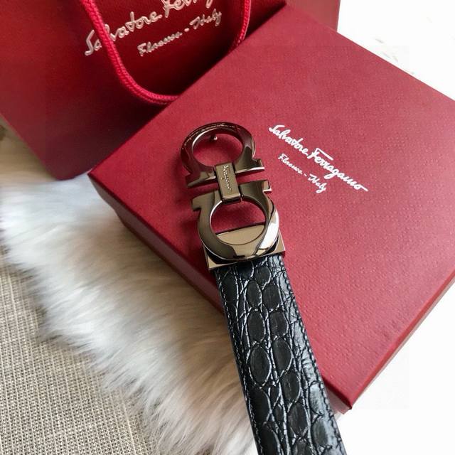菲拉格慕 Salvatore Ferragamo 意大利 宽度3.5Cm 精美扣头 不褪色 小牛皮 手感极佳 上身郊果棒 商务休闲两用