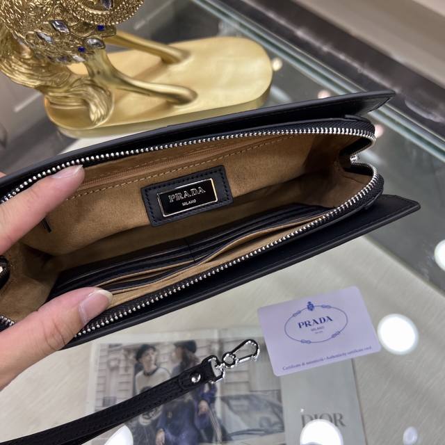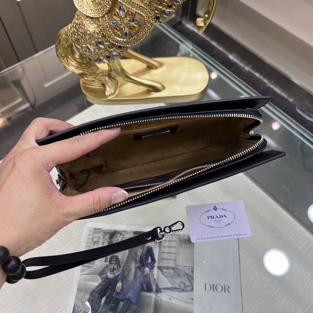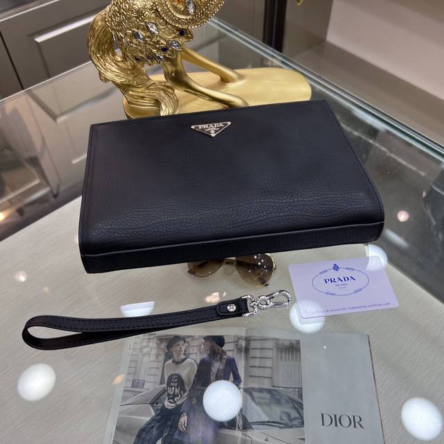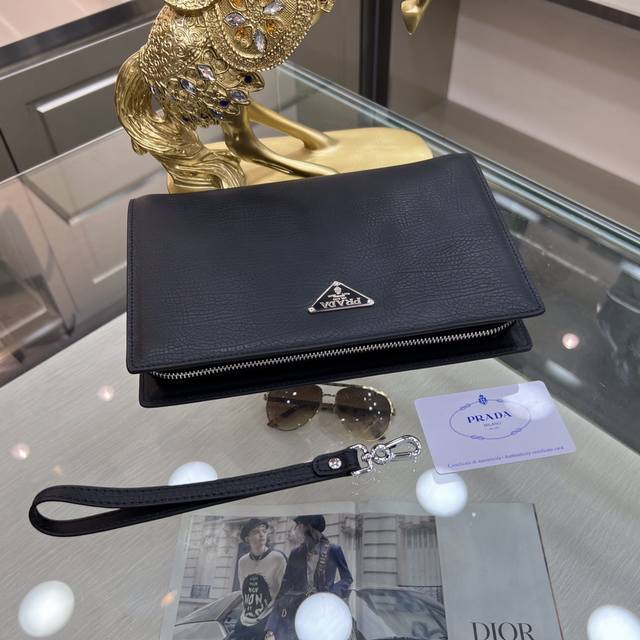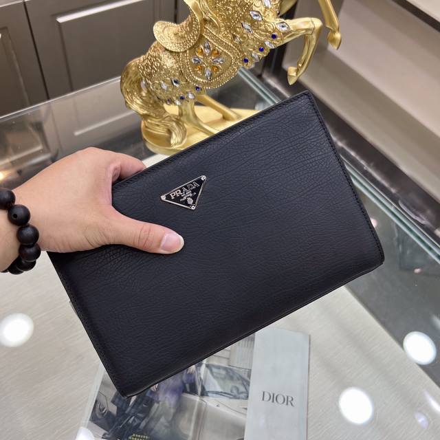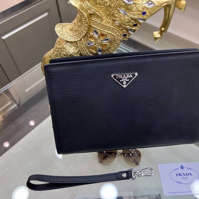 / Prada普拉达 新款手拿包 采用进口头层定型牛皮,顶级抛光不锈钢饰面金属配件 ,正面外部三角形珐琅徽标,简单大方商务 成功男士们的最爱!尺寸:26-17-5.