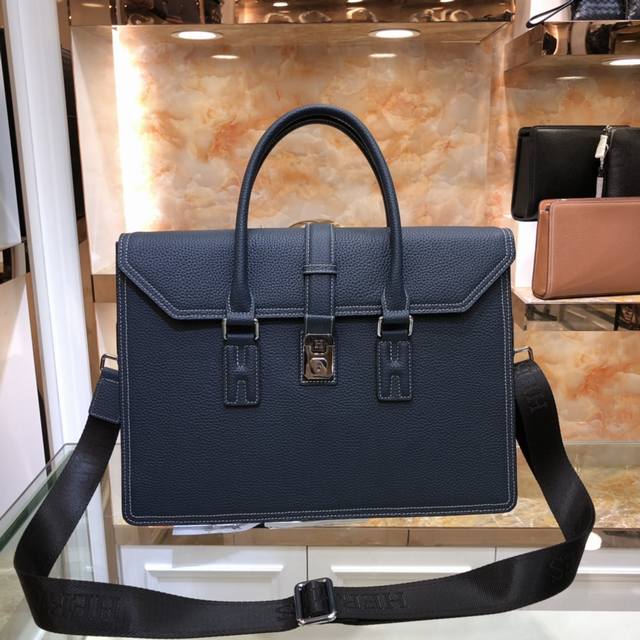: 爱M仕爆款公文包新上市采用顶级进口头层牛皮 专用里布 内里拉链袋 暗袋 皮质柔软 做工精细 高端质量 实物拍摄 独家品质黑 蓝 黄 三个颜色,尺寸:38*28*7