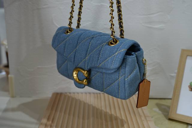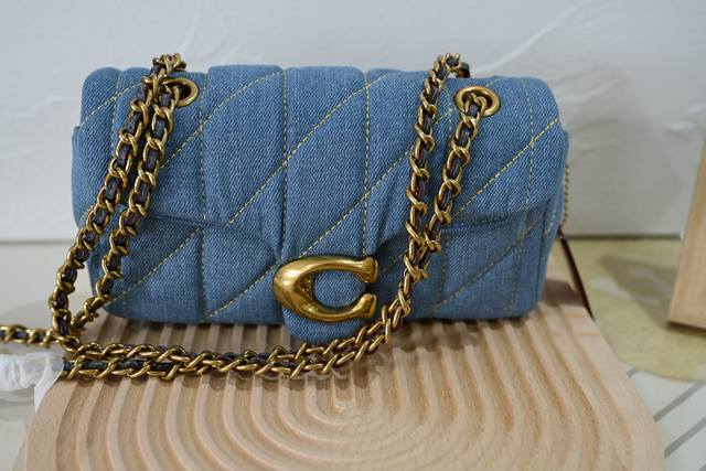 330 Coa*H新品 全皮C 牛仔Cr701 Quilting Tabby珩缝工艺的链条Tabby 酷酷的暗黑扣,低调又高级,复古的金扣选一个你喜欢的尺寸和颜