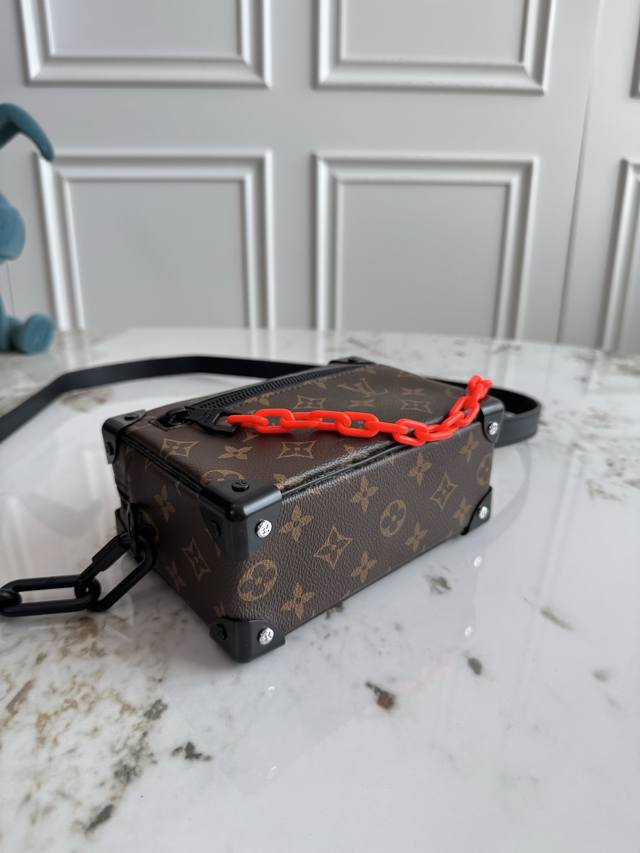 独家背景 动态芯片 顶级原单 M44480老花橙 M44735黑花 68906老花金 55702黑压花 Mini Soft Trunk 這款Mini Soft Trunk於 系列經重新演繹,選用全新奪目迷人的混合物料打造,以奢華的黑色鴕鳥皮配搭小牛皮襯裡。設計棱角分明,綴有取材自品牌行李箱製作傳統的加固包角,加上獨特的鏈帶細節,造型更顯時尚別緻。這款寬敞實用的都市風手袋成就精緻的主打款式。Size:18.5 X 13 X 8 厘米