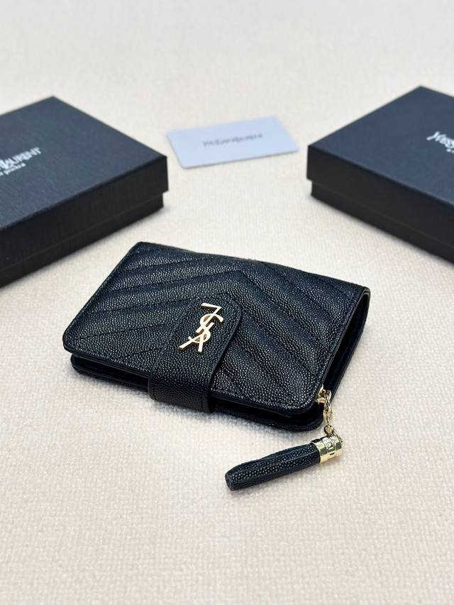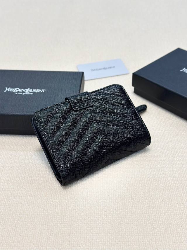 ysl家 Y家短夹 正品开发 进口牛皮压鱼子酱 一个中央隔层,一个纸币隔层,六个卡片槽,一个拉链零钱袋,尺寸不大 用处不少...