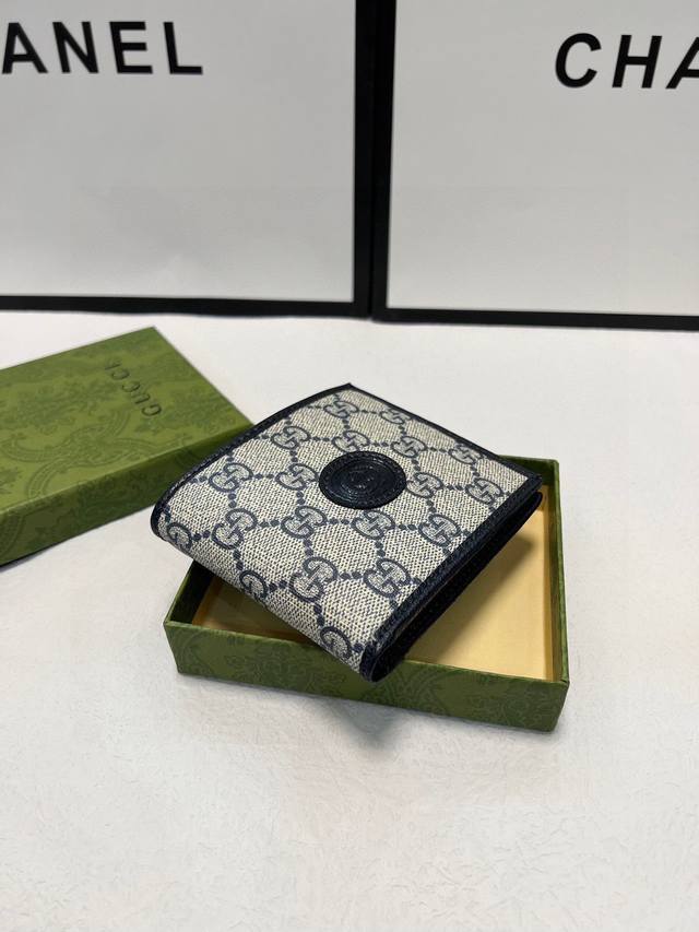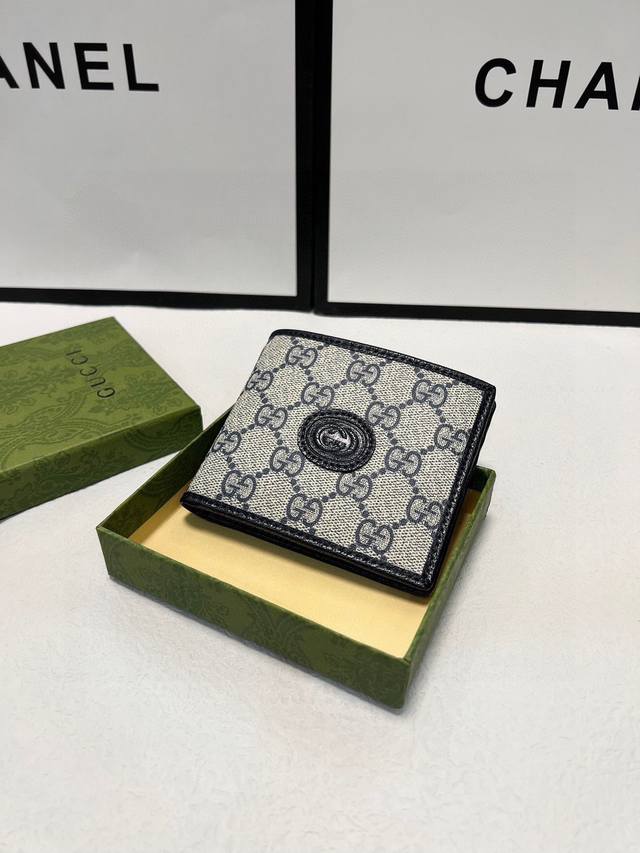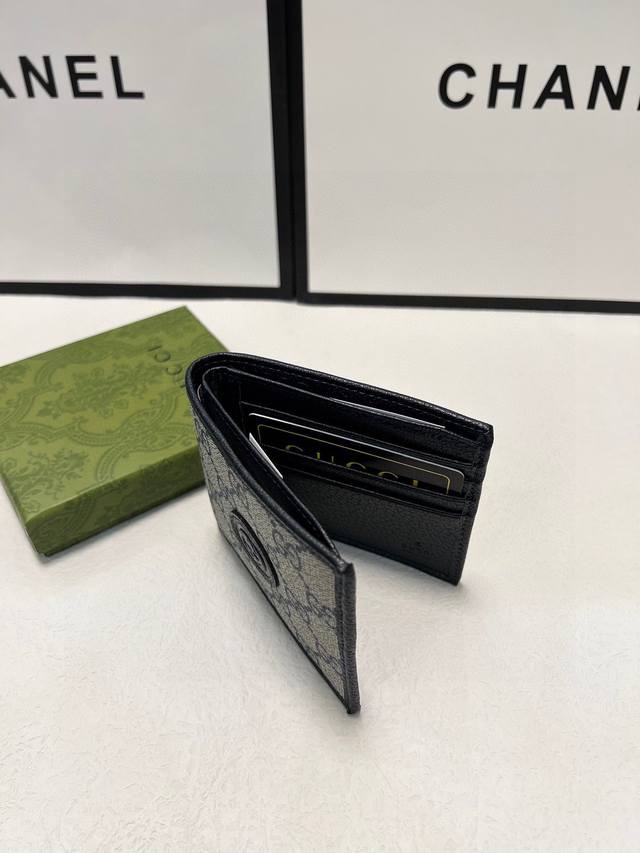 顶配版 配绿盒包装 饰Gg细节卡片夹。这款卡片夹采用米色和乌木色Gg...