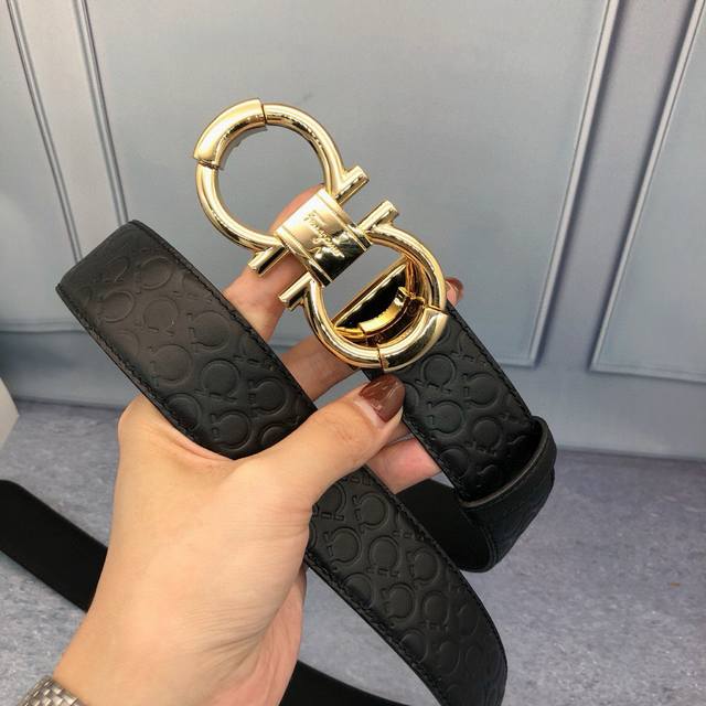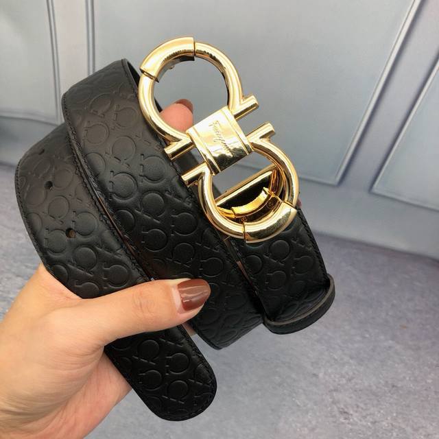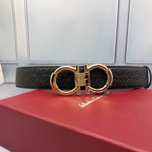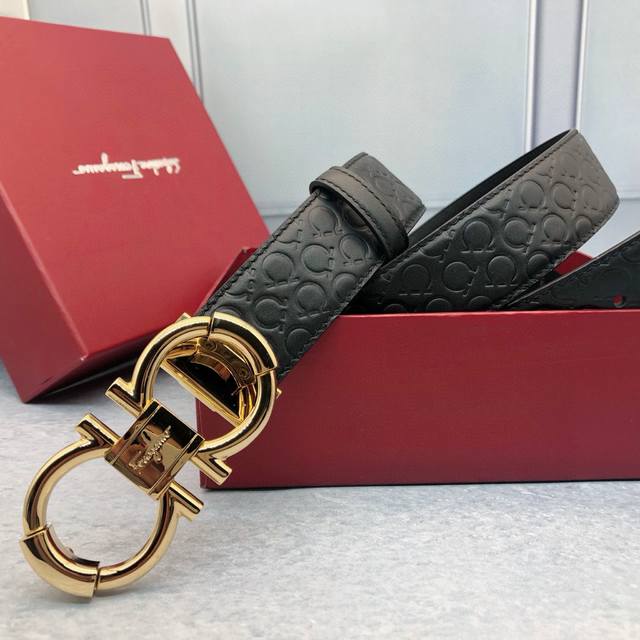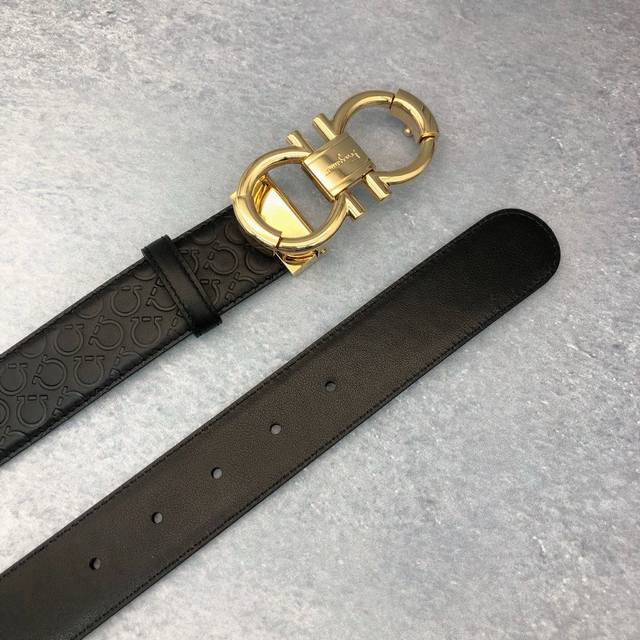 菲拉格慕 宽35Mm,原版五金扣头,极富设计美感 ,带身采用原版压花牛皮,清晰美观,皮质软,手感舒适,档次高。高清实拍芯片防伪款