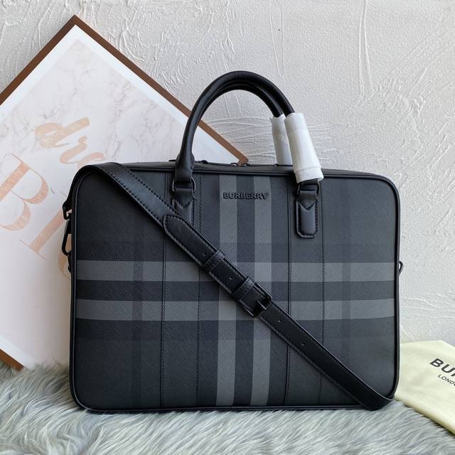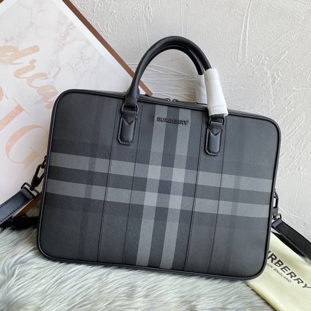 / B家最新款公文包,采用格纹与意大利鞣制皮革打造,装饰品牌徽标设计。可缔造手提造型,或使用可拆式背带肩背携带。此件精品的主要材料中至少 30% 来自生物基材料。生