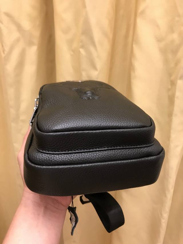 / 新款男士胸包,实拍,选用进口头层牛皮,皮料柔软舒适,手感超好。里里外外4个拉链,内有一个插袋。前面的羚羊设计,图案很有立体感,好看好看!数据线鸡眼现代化设计更显