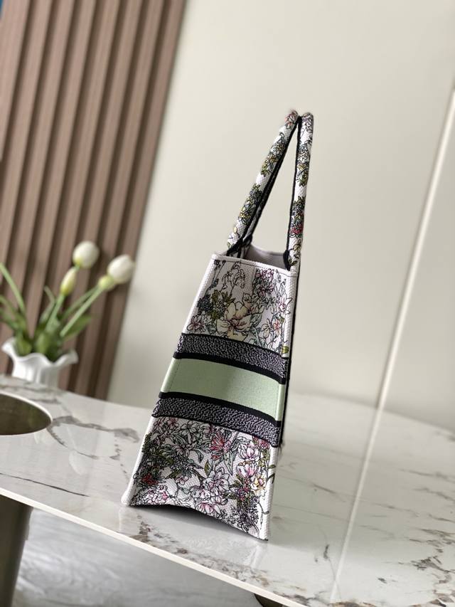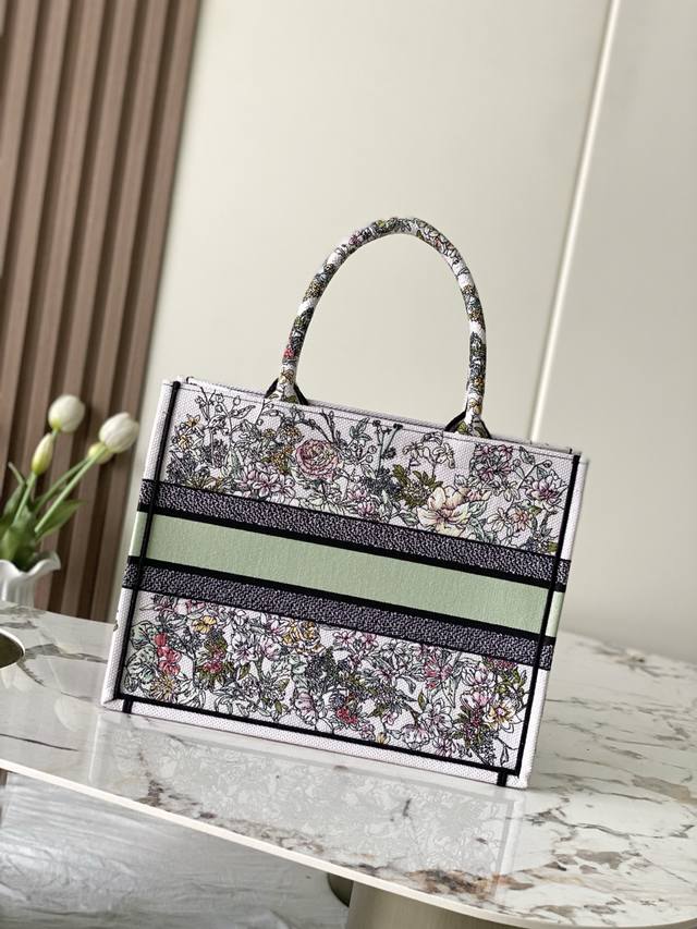 这款Book Tote手袋灵感来自女装创意总监玛丽亚 嘉茜娅 蔻丽 Maria Grazia Chiuri 是体现Dior审美的主打产品。可收纳各种日常用品,全新演绎Bayadere图案混合效果D-Stripes图案刺绣,更具时尚风范。正面饰以“Christian Dior”标志,充分体现了Dior的精湛工艺。
