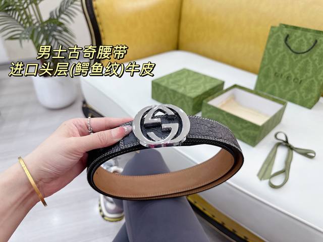 原版品质打孔 品牌:古奇G家 男款 颜色:黑 扣头:金 银 扣头:原版精品纯铜五金扣头 带身:原版牛皮 尺寸:宽约:3.5Cm...