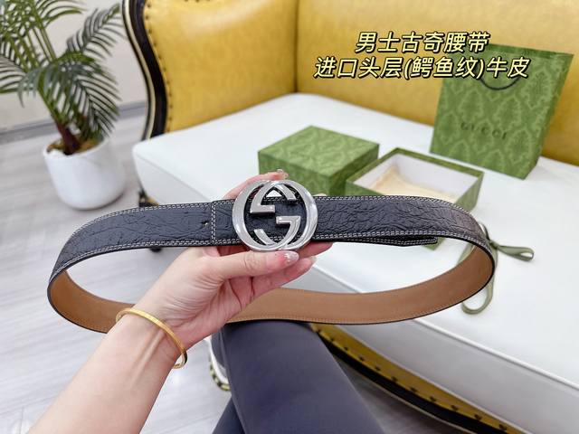 古奇 原单.品牌气息浓厚采用头层牛皮制作 结实耐用 迎合商务风格,上身效果超好,细节一流,商业潮男搭配休闲时尚 3.8厘米