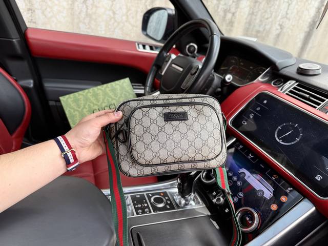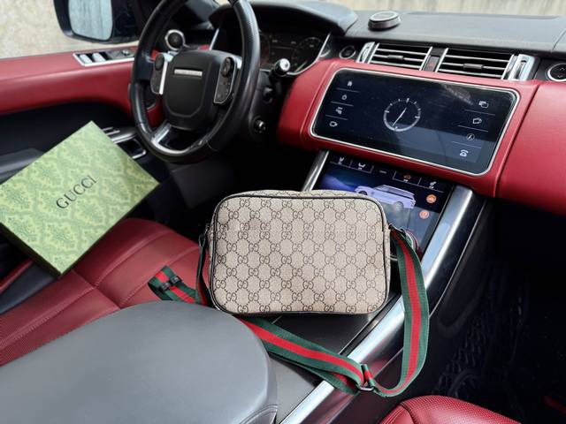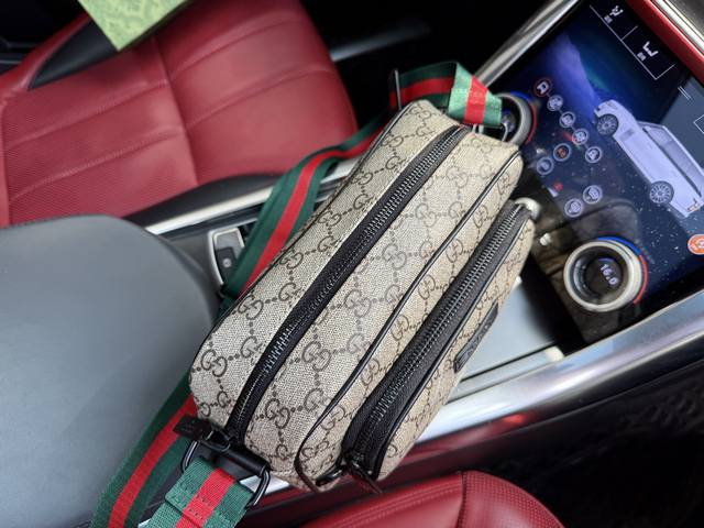 高端货 “Gucci 古奇”单肩包 Gucci古驰 牛皮单肩邮差包 Ophidia老花logo 条纹织带 帆布拼皮 单肩斜挎包 男女同款情侣款 黑色...