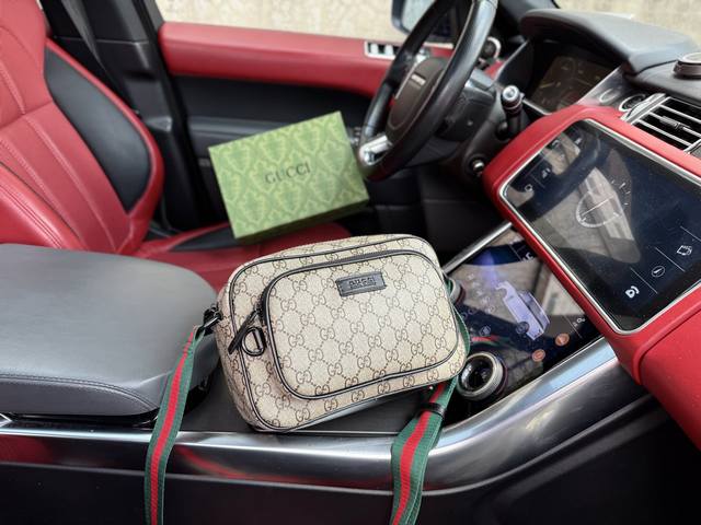 高端货 新款 “ Gucci ”古奇单肩包 Gucci古驰邮差包 Gucci古驰 Gg Emblem 标志品牌印花拉链开合 涂层面料 单肩斜挎包 中号 男款 杏色 高清五金Logo标志、内里隔层!专用内里。顺滑拉链、做工精致每个细节到位!男人必备款。规格:23X16X8Cm 配礼盒