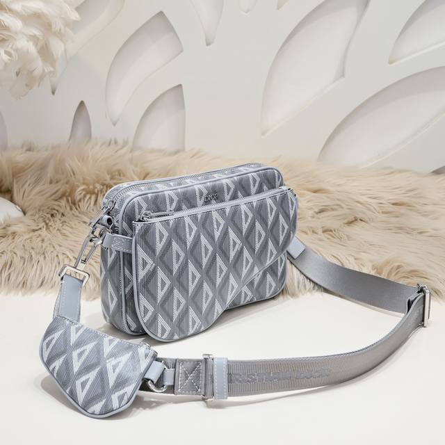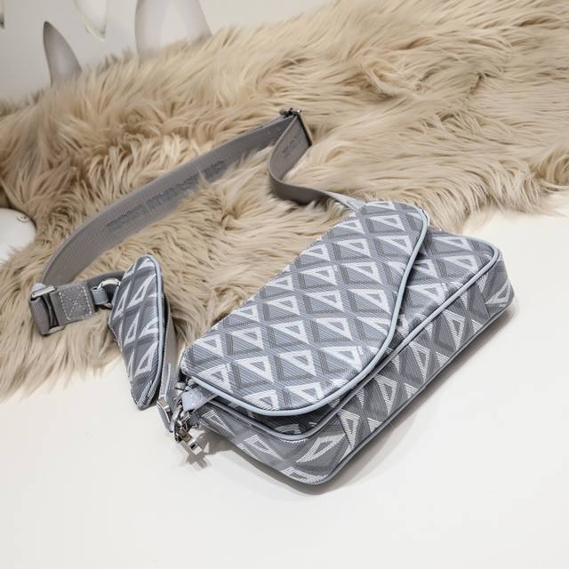 Dior-迪奥专柜最新款单肩包官网同步 原单品质 这款Saddle三门是本季新品 三件套 别具一格 采用黑灰色与黑色相间的Dioroblique提花材质制成 是活用的三款小袋 由可拆卸正面鸟袋和可拆卸纳米鸟袋组成的拉链包为特征的三合一风格 可调节可拆卸的肩带 可肩背可斜挎 款式新颖 独特魅力 百搭休闲实用 出街帅帅哒尺寸:23.5 16.5 4.3Cm