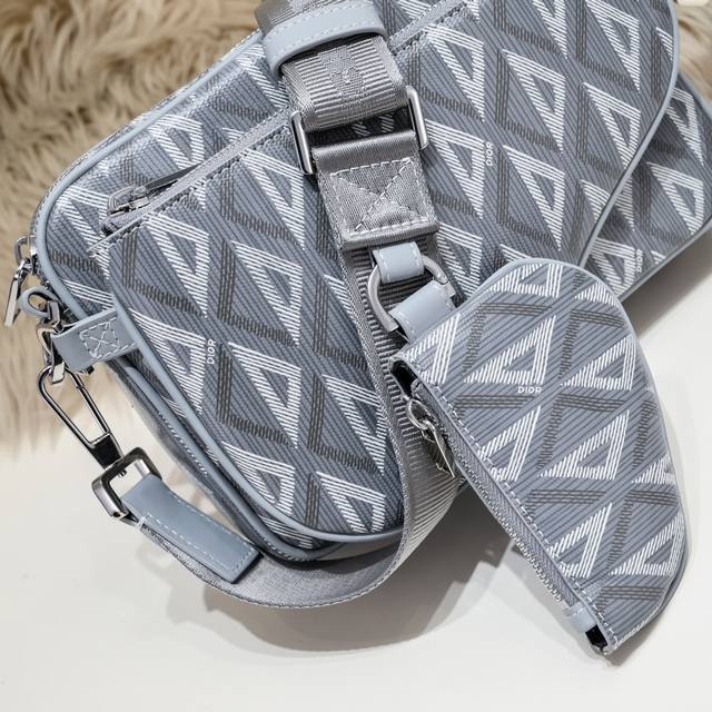 / Dior-迪奥专柜最新款单肩包官网同步 原单品质 这款Saddle三门是本季新品 三件套 别具一格 采用黑灰色与黑色相间的Dioroblique提花材质制成 是