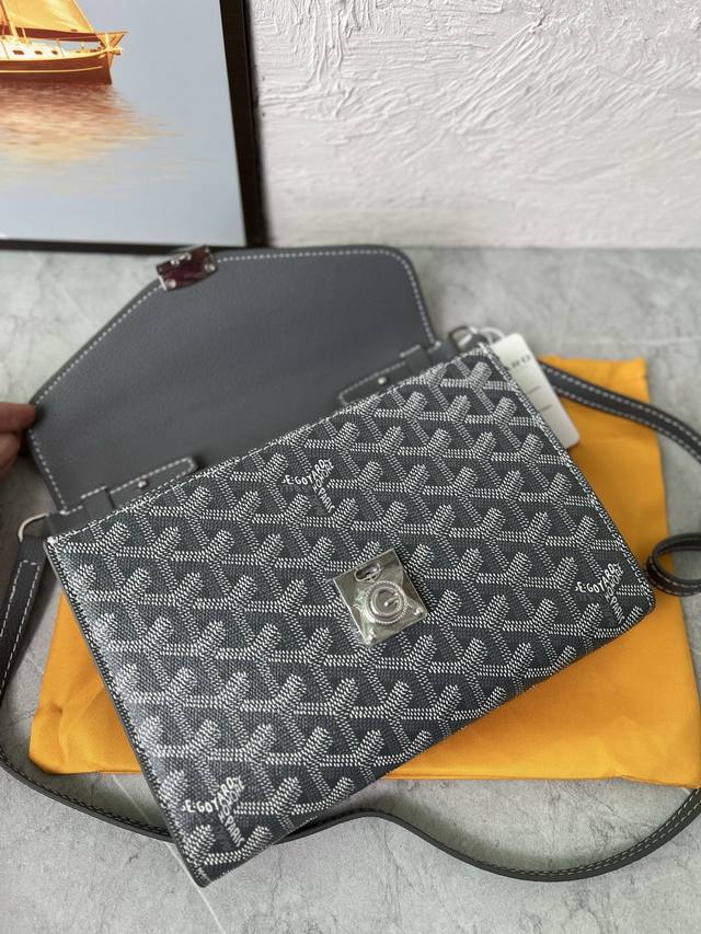 Chypre斜挎包的设计既有钱包的特点,又有手袋的构思,既巧妙又实用。包内有 6 个卡位,还有一条可拆卸可调节的皮质肩带,可肩背、斜挎或手拎。
