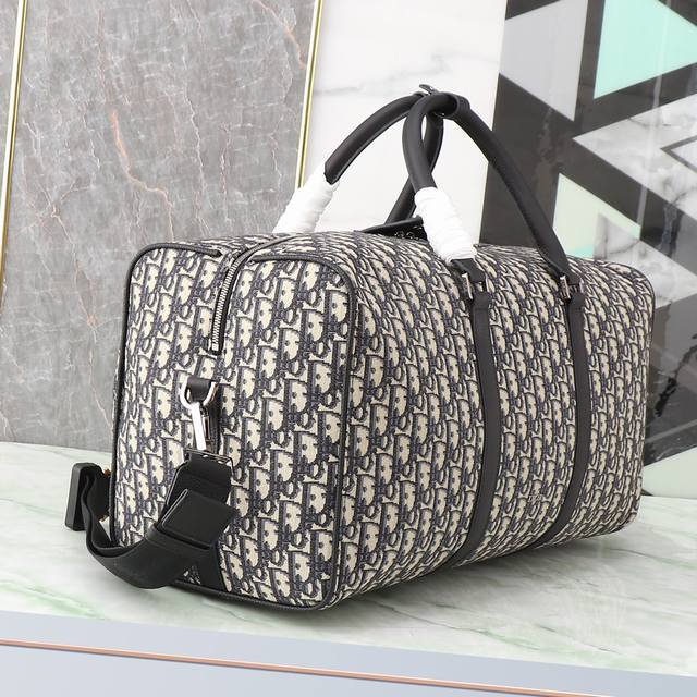 这款 Dior Lingot 50 手袋是本季新品,实用而优雅,别具一格。采用米色和黑色 Oblique 印花面料精心制作,搭配黑色粒面牛皮革细节提升格调,正面饰以“Dior”标志。拉链隔层搭配马鞍翻盖,可收纳各种日常用品。搭配可折叠的顶部手柄和可拆卸、可调节肩带,带有铝扣,可手提、肩背或斜挎。