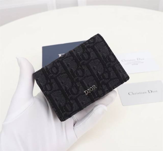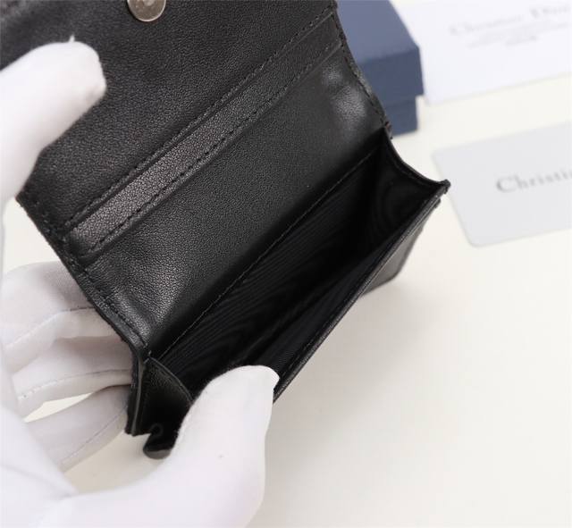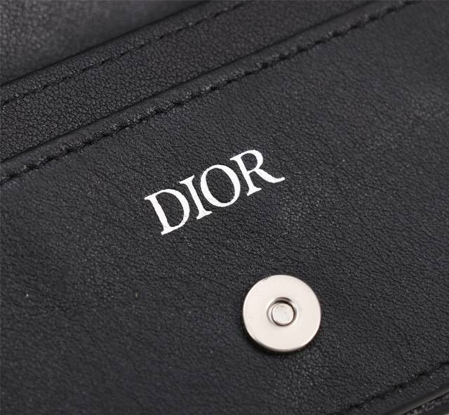 / 这款名片夹实用而精致,美观时尚。外部和内部分别采用黑色Oblique印花面料和黑色牛皮革精心制作,彰显Dior的精湛工艺。内设带卡槽的角撑式隔层,翻盖也设有两个
