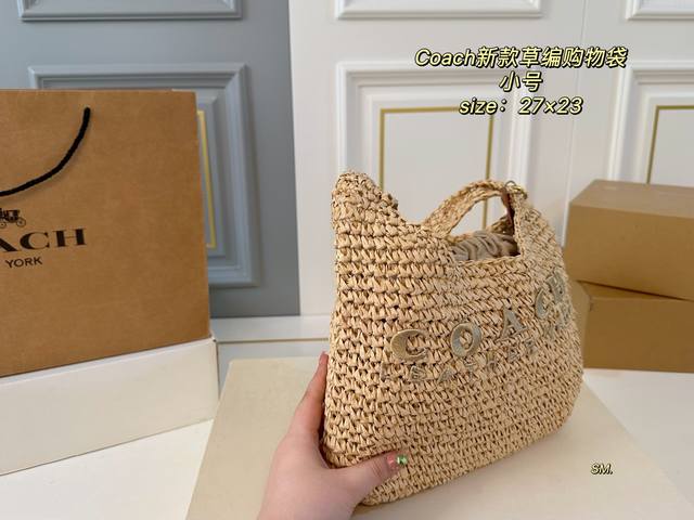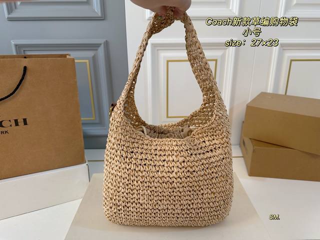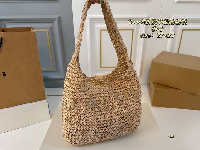 / 小号 无盒 Size:27×23小号 Coach蔻驰新款草编购物袋 刺绣Logo搭配草编设计 非常大气 搭配衣服毫无难度 旅游度假,夏日氛围满满