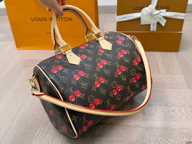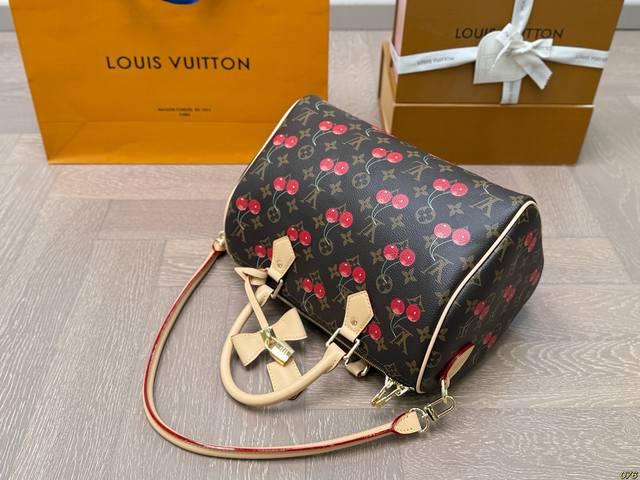 配折叠盒 Lv村上隆枕头包第三季樱桃系列Ivy白色+樱桃挂件这个配色太爱了 适合夏天背的包包 尺寸25.16Cm