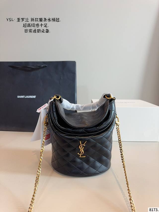 配礼盒 圣罗兰 Ysl.薯条包 菱形珩缝的薯条包. 可手拎可斜挎. 很有趣味性 造型感满满、尺寸:15*13*18Cm