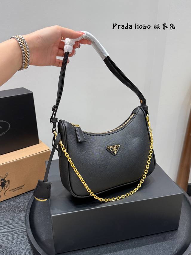 带盒子 Size:22 13Cm 普拉达Prada Hobo牙签纹腋下包 看到实物真的堪称完美! 包装 设计超级方便和舒服!