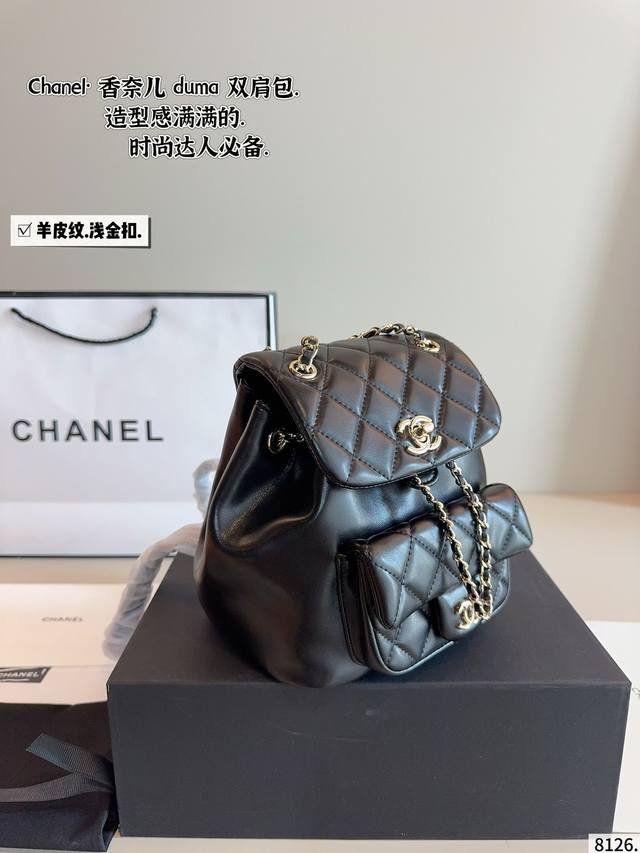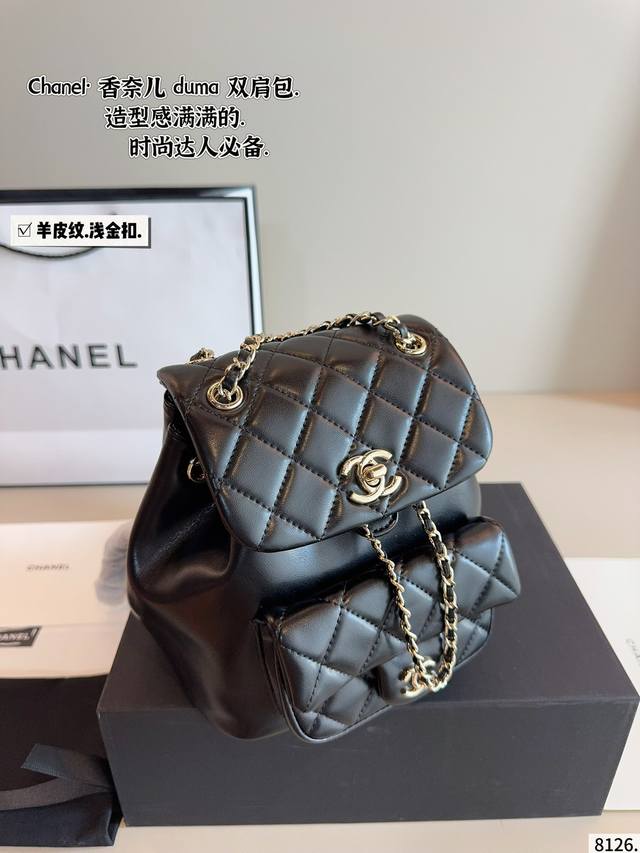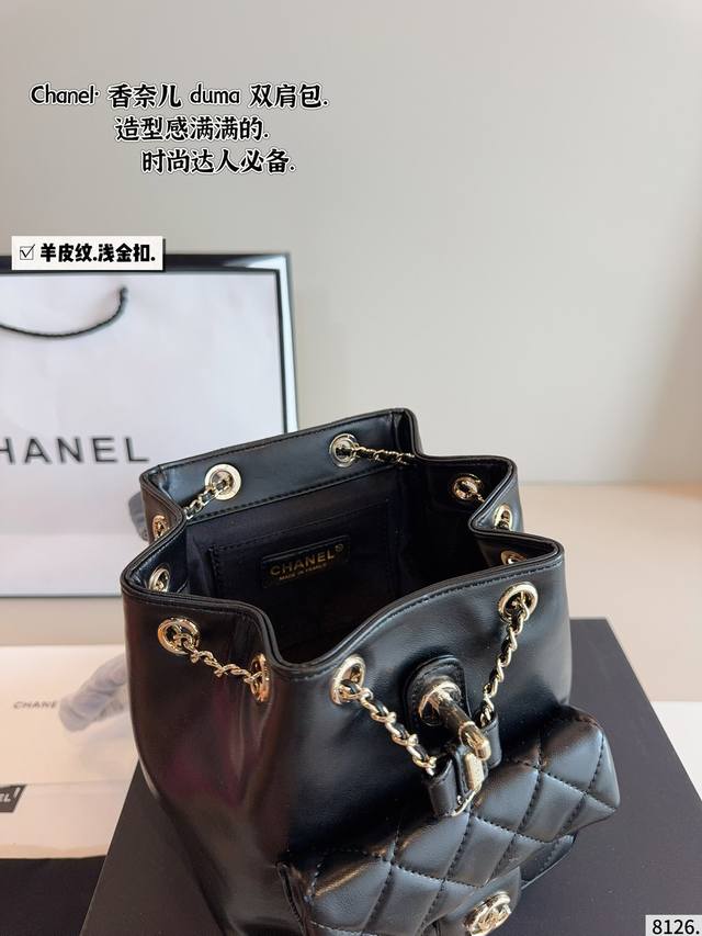 配礼盒. 香奈儿Chanel双肩包 简直无法拒绝 超显气质 高级感十足 集美必入款 尺寸:17*13*15Cm