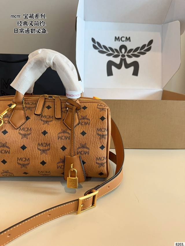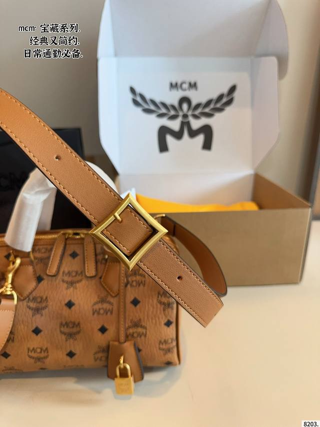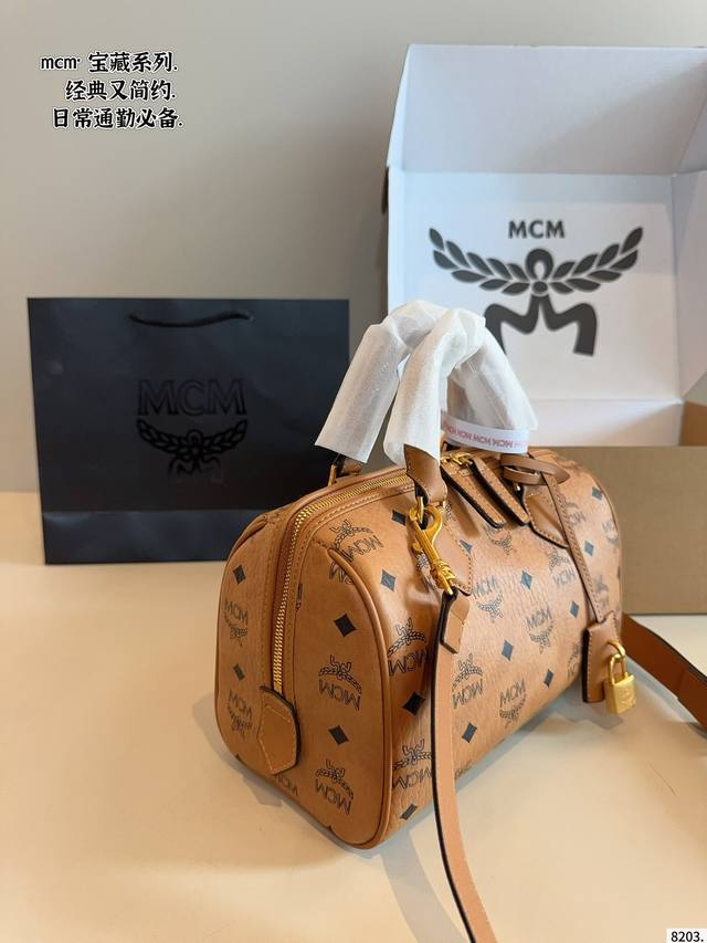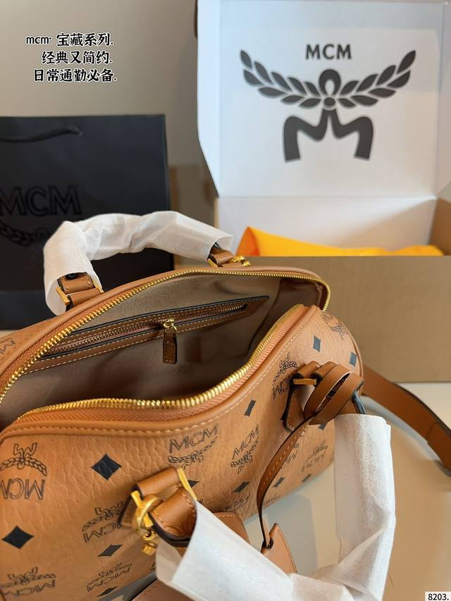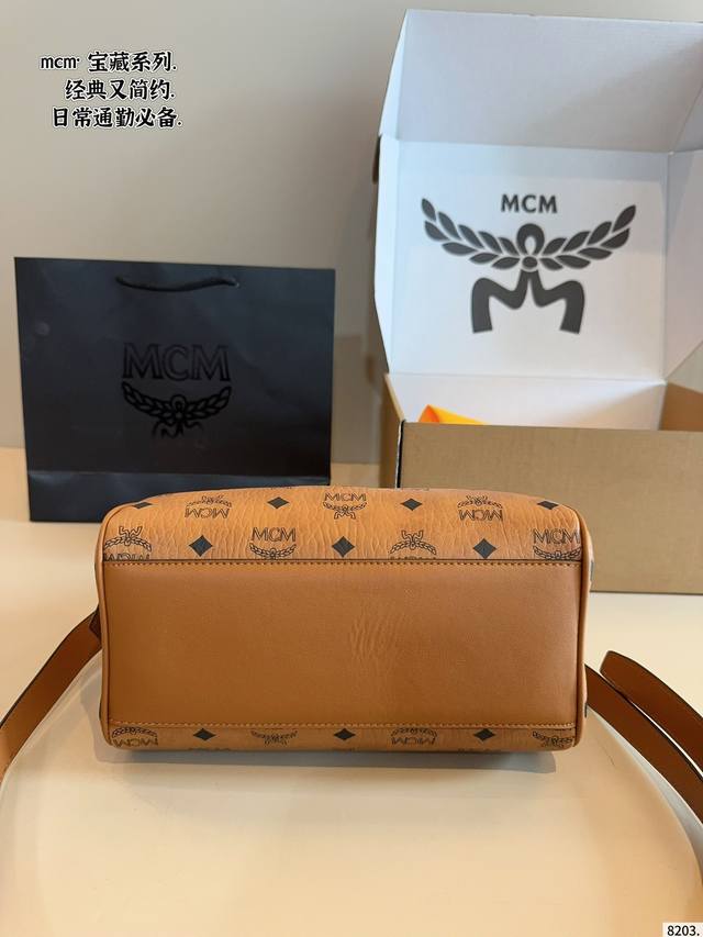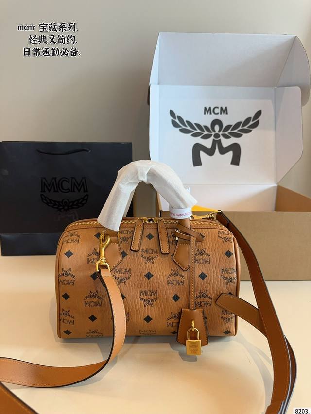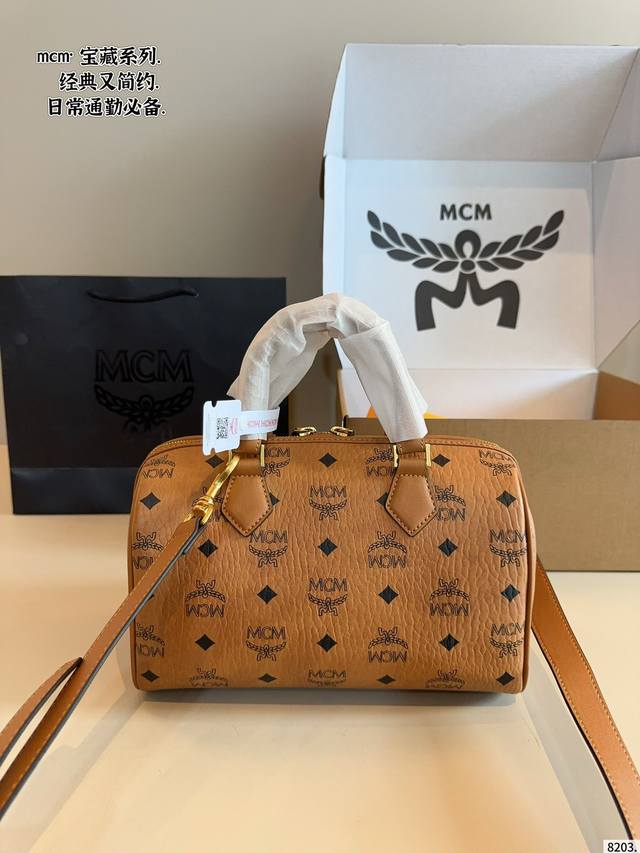 配礼盒 Mcm 波士顿枕头包 简单百搭 颜值高 日常出街首选 潮酷时尚女孩必入款尺寸:25*13*16Cm