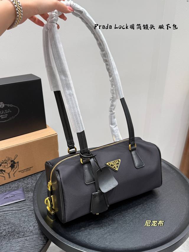 普拉达Prada Lock圆筒锁头包腋下包太方便了 尼龙布防水布 轻便又耐磨 Lock系列的枕头包,肩带可以调节,搭配拉链跟锁扣开合,容量宽敞,实用轻便~ 尺寸