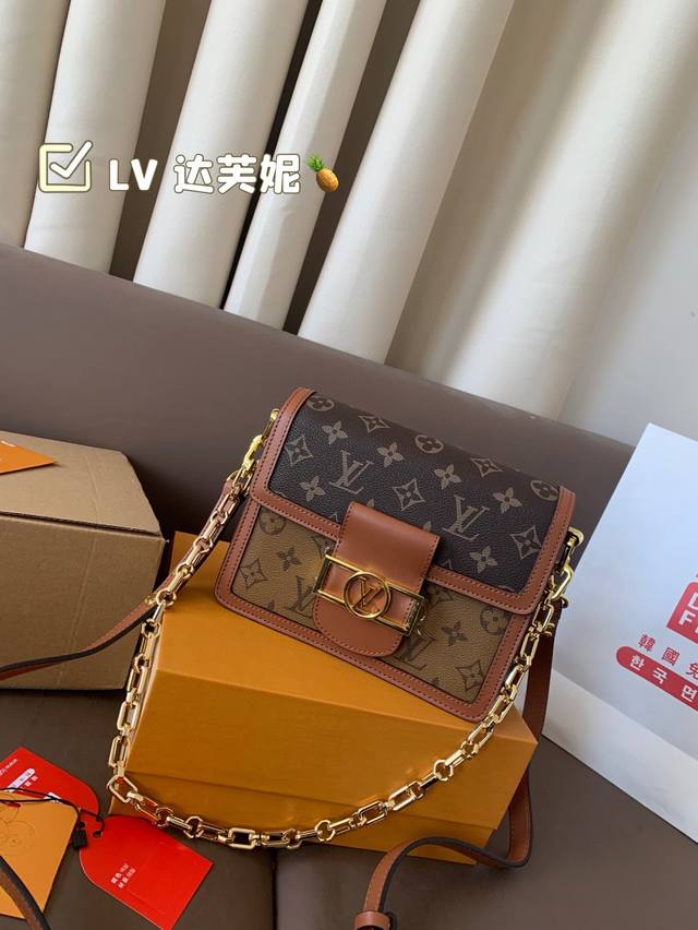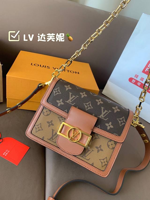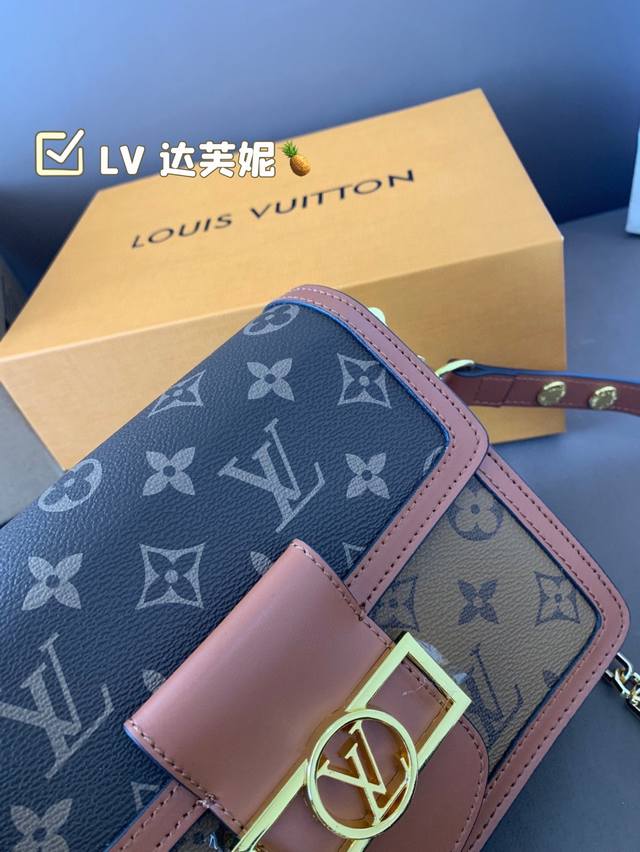 配飞机盒折叠盒子 Lv 达芙妮 细节真的很高级,给你一种奢华级体验,五金的打磨和,到饰边的涂抹都是纯手工,包边全部压线,显得更加精致,包身升级为拼色双色老花拼接,搭配方正的包型,复古与现代的完美结合,时髦也很洋气,大气方正又利落,显而易见的高级感,第一眼就会被它深深吸引住,看明星上身图,超级惊艳的。颜值太高了,怎么都好看,360度无死角,把它当出游包超级赞。尺寸20*16