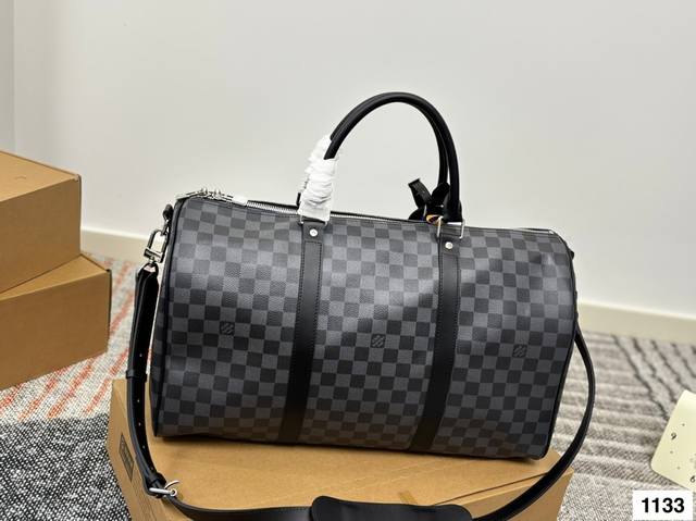 Lv旅行袋 非常具有设计感 简约又精致,细节满满 无论是长途旅行,还是短途郊游,都是超实用的时尚搭配哦!尺寸:50Cm 45Cm
