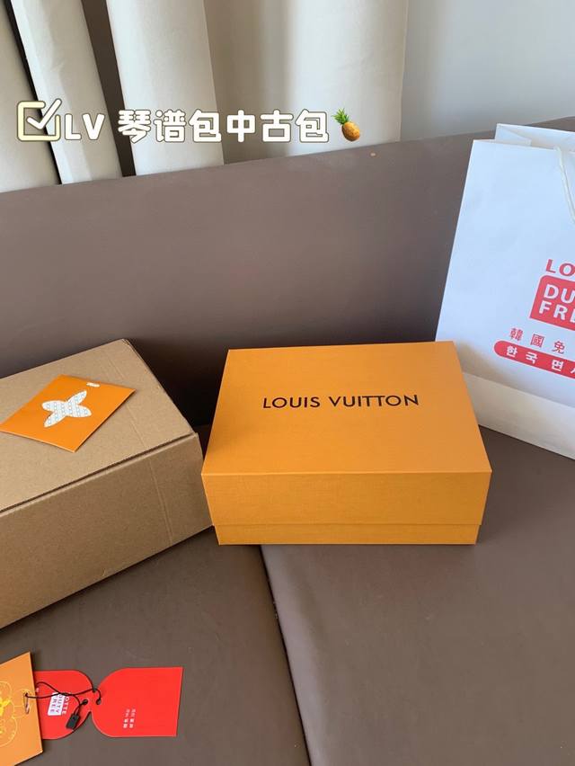 配飞机盒折叠盒子Lv 琴谱包 这只中古包,又酷又复古,超喜欢这个迷你,秋冬穿大衣拎着特别英伦。其实琴谱包男生背起来更好看,长肩带斜背超帅!!尺寸:14*17