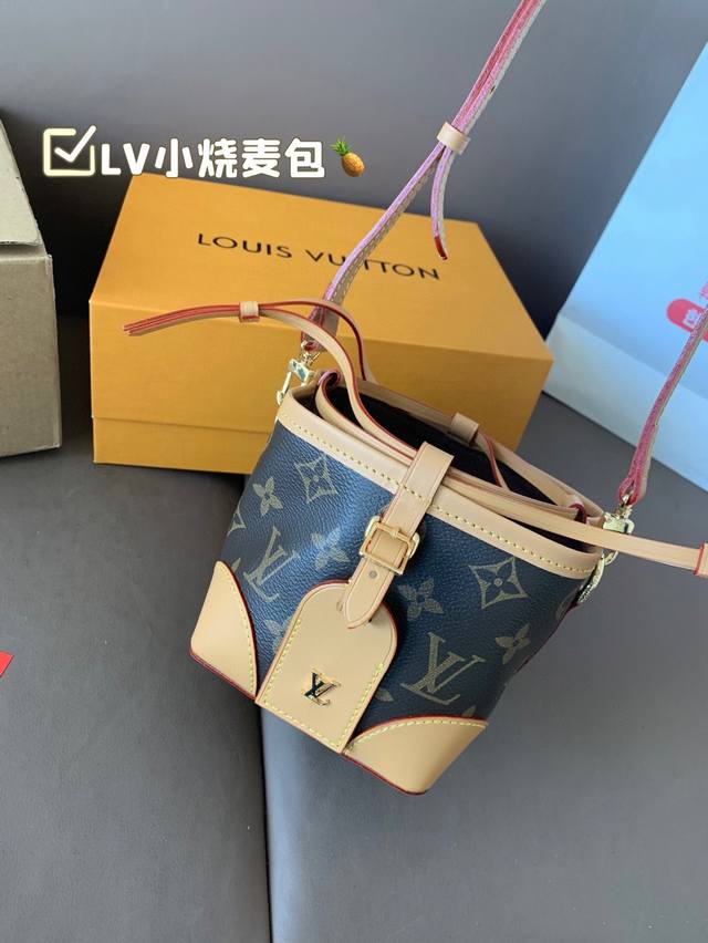 / 配飞机盒折叠盒子 欧阳娜娜同款Lv小烧麦包Mini超可爱 Mini小水桶包的形状 宛如一个小烧麦Lv经典老花+牛边饰边+抽绳封口设计可以向两边收紧也可以向两边延