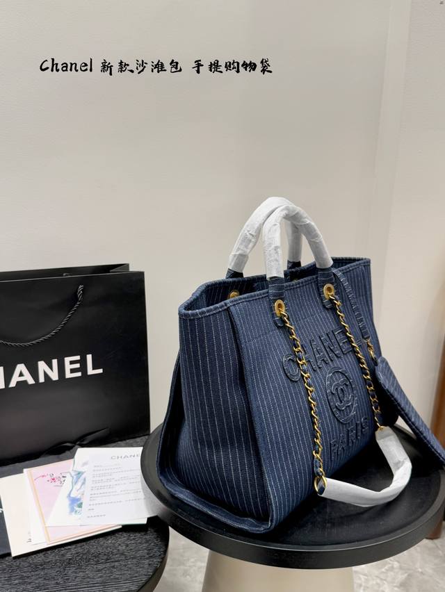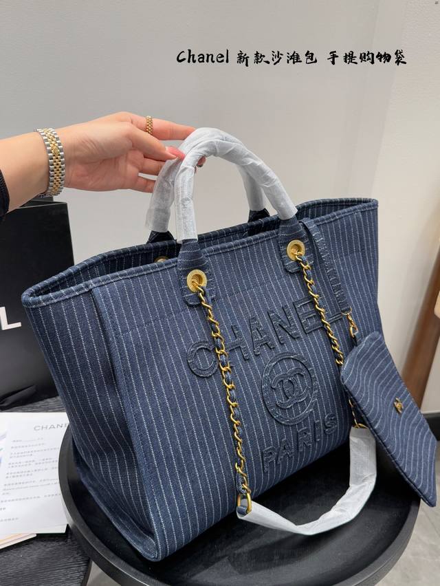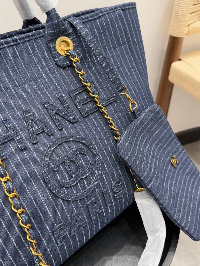 Chanel 香奈儿沙滩包购物袋条纹牛仔