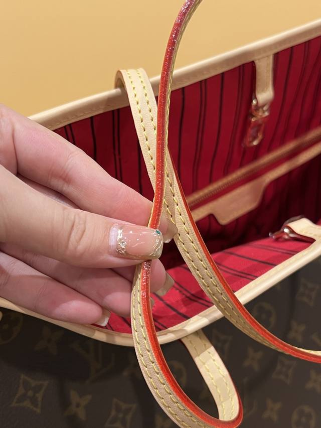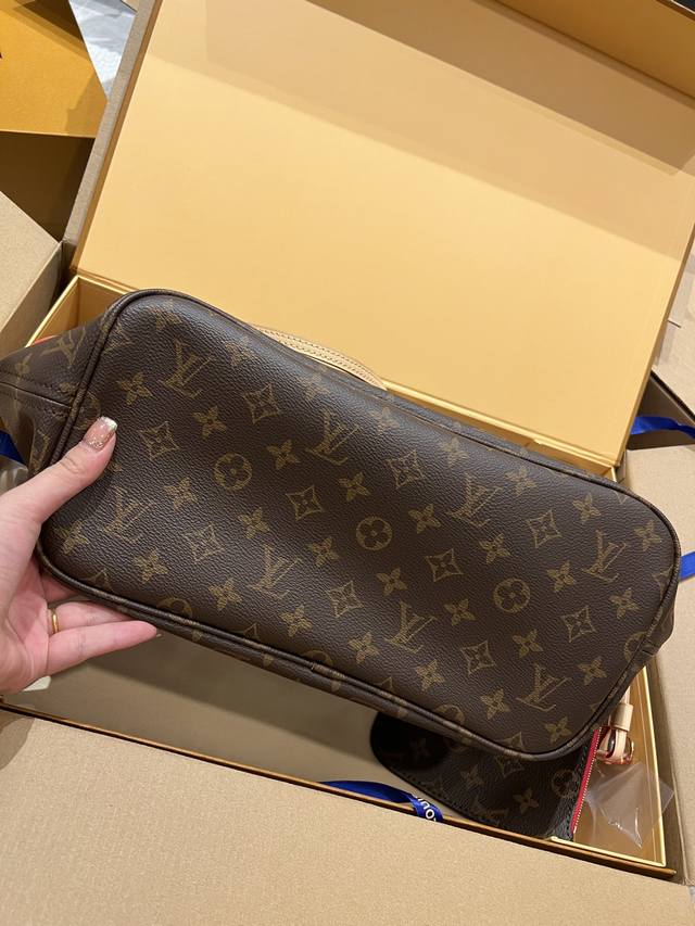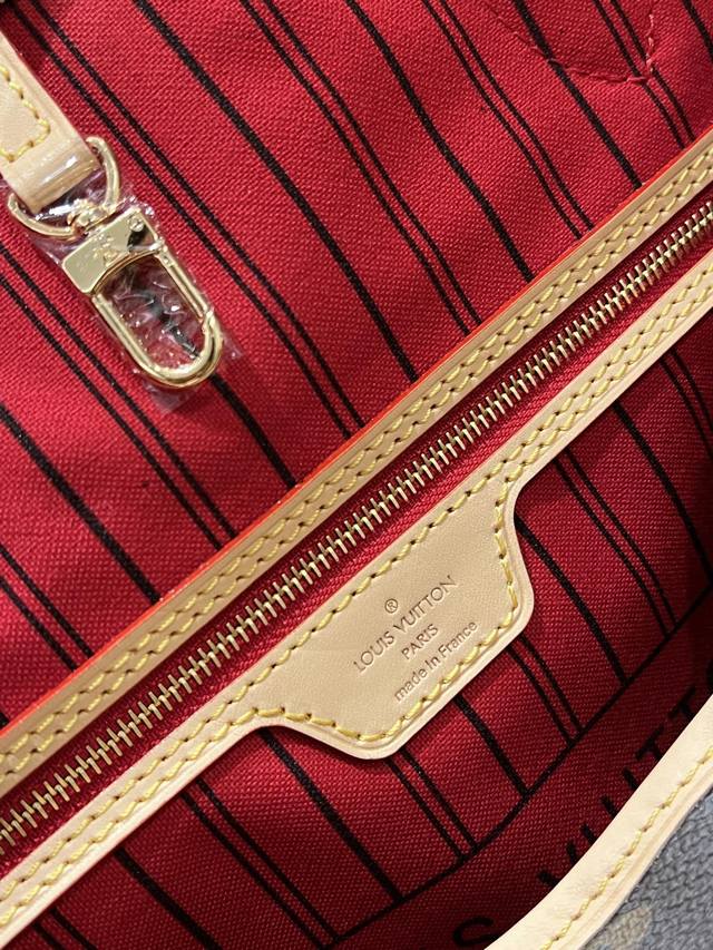 原单Lv Neverfull 购物袋!入门级的款式哦!绝对的终身款!此物经典不言而喻!街拍和实用都是非常Nb的选择!大家拿到后可以感受下,皮质颗粒之间空袭分明,宽度平均,摸上去软硬适中 尺寸 :32 *28
