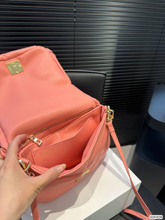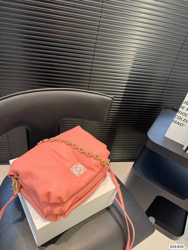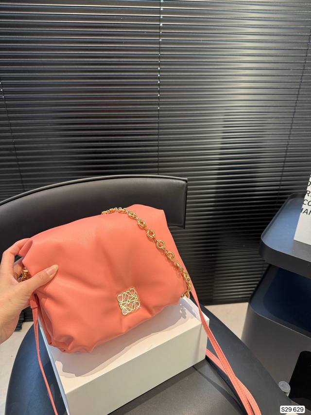 配折叠盒子 Loewe秋冬时髦住了 罗意威面包包 是圆鼓鼓的设计很可爱,面包包填充了摸起来超级舒服 搭配了金属短链条又很时髦!尺寸:25 21 货号629