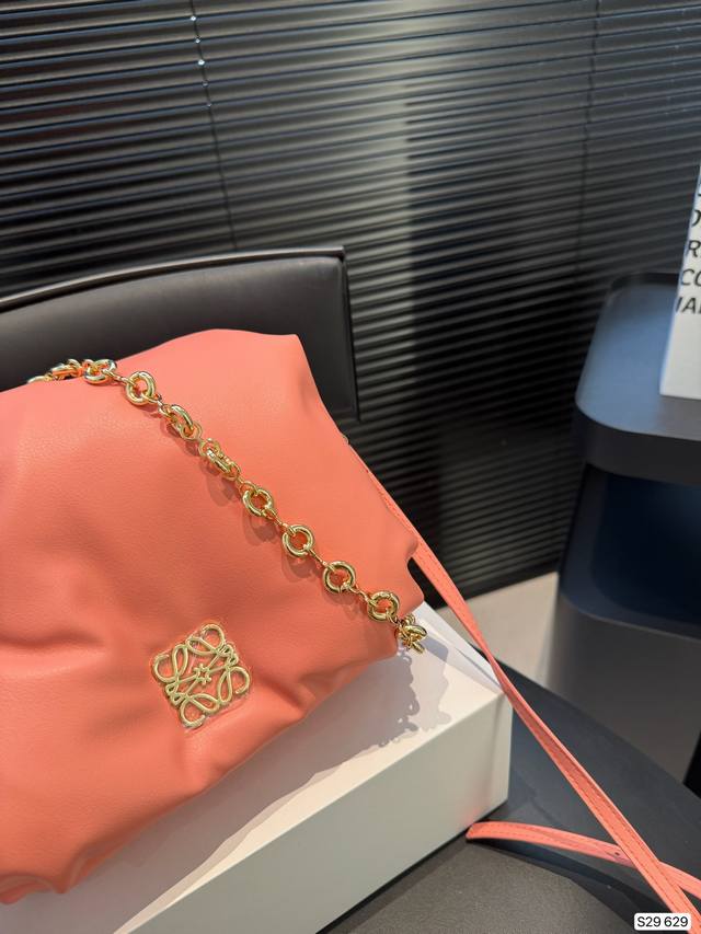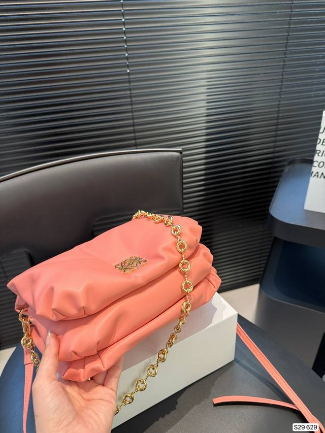 / 配折叠盒子 Loewe秋冬时髦住了 罗意威面包包 是圆鼓鼓的设计很可爱,面包包填充了摸起来超级舒服 搭配了金属短链条又很时髦!尺寸:25 21 货号629