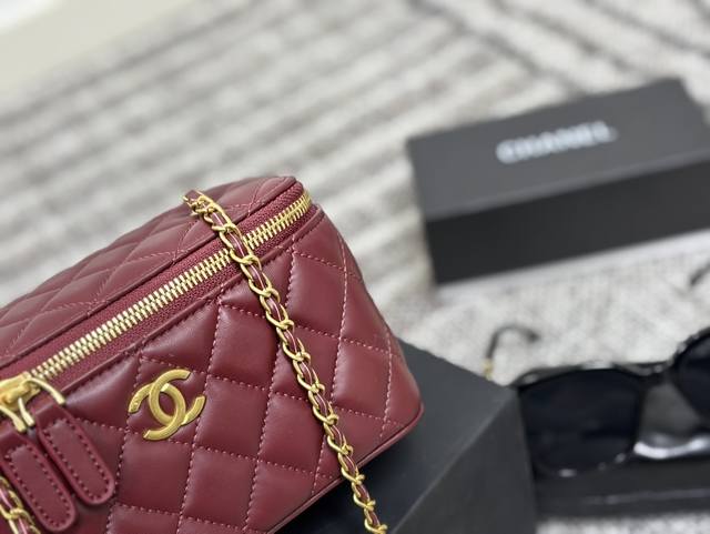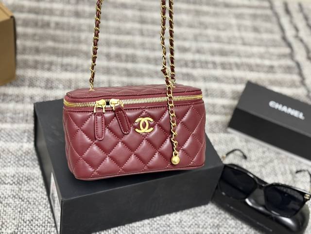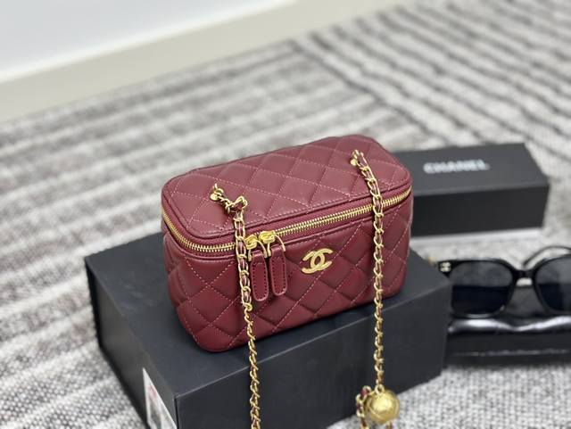/ 配墨镜50 折叠礼盒 Size:17*11Cm 这个 Chanel 金球 化妆盒 化妆包 我心动了 Chanel 香奈儿 新版金球可调节肩带长盒子化妆包羊皮盒子