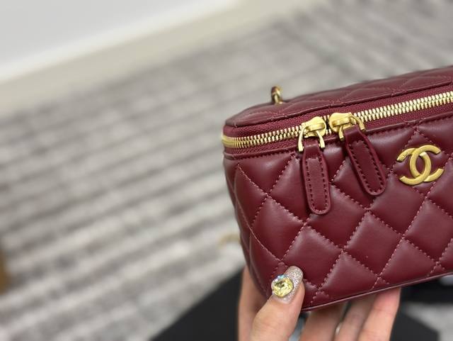 Chanel 香奈儿 新版金球可调节肩带长盒子化妆包羊皮盒子包单肩斜挎包黑色
