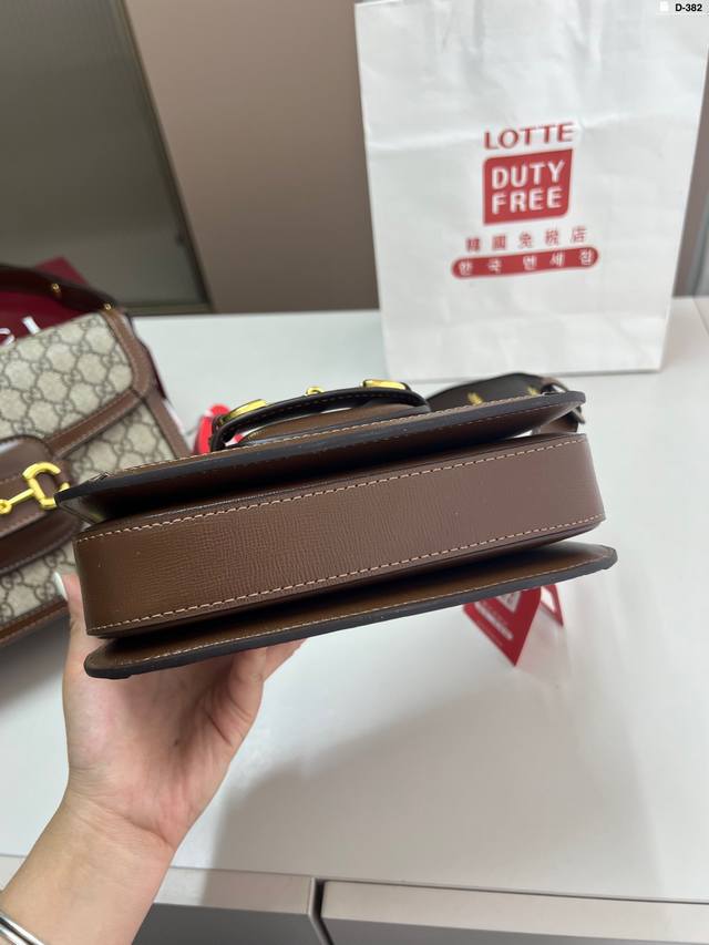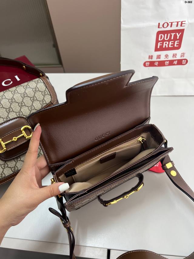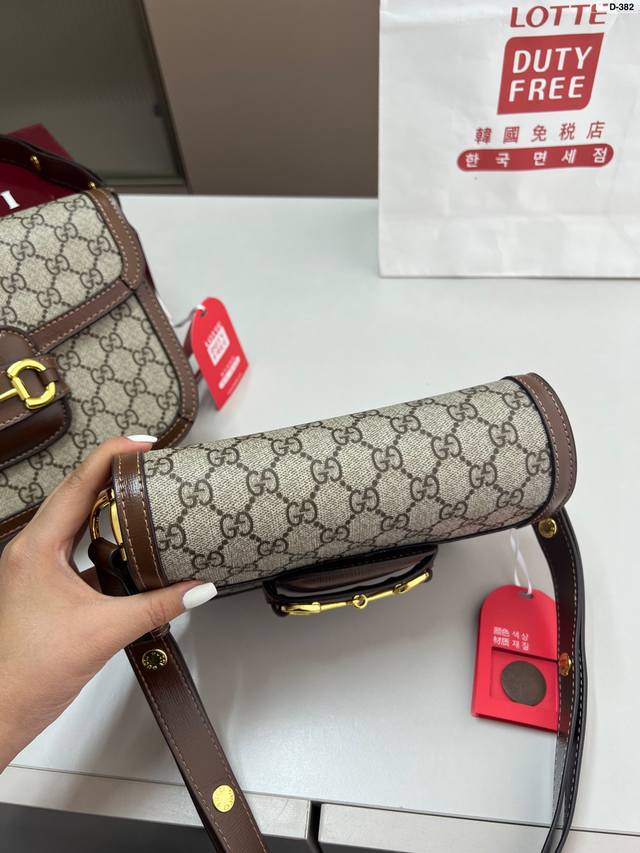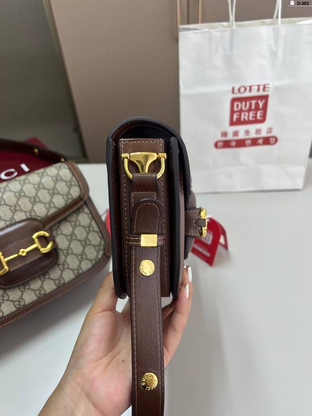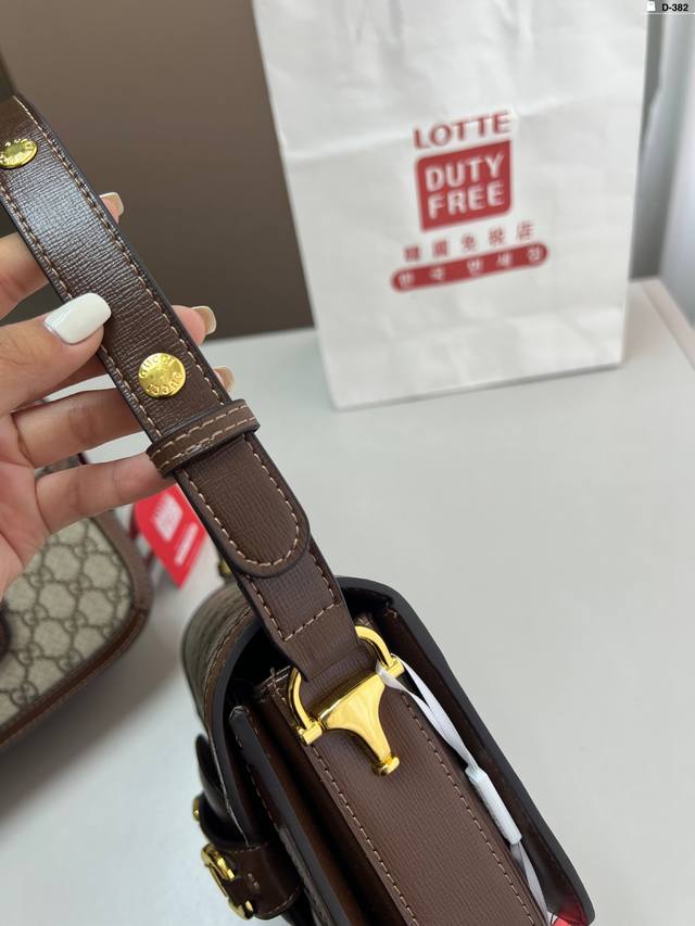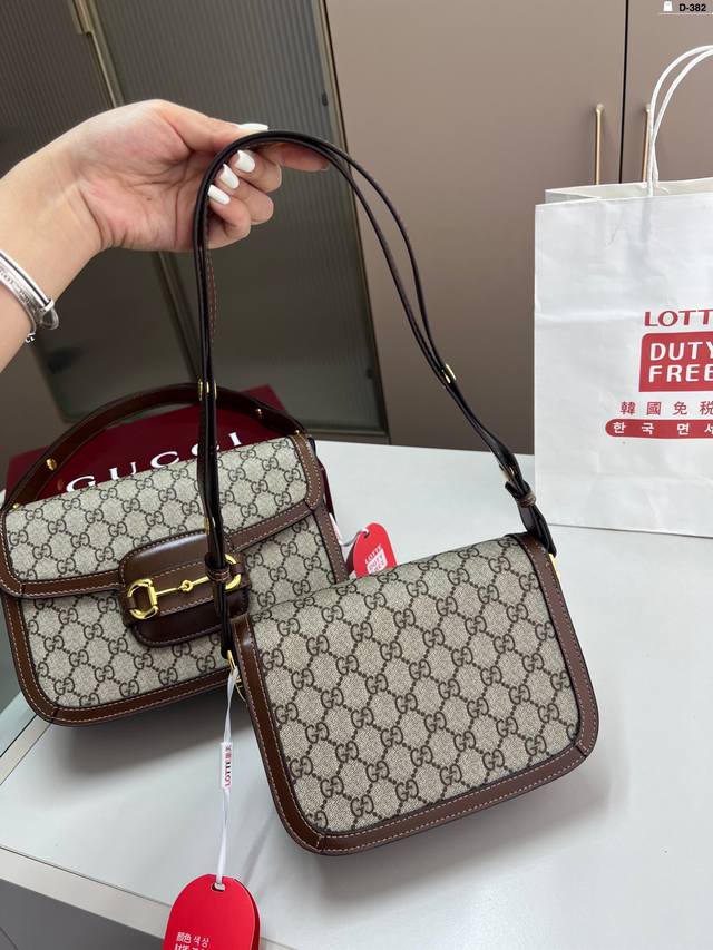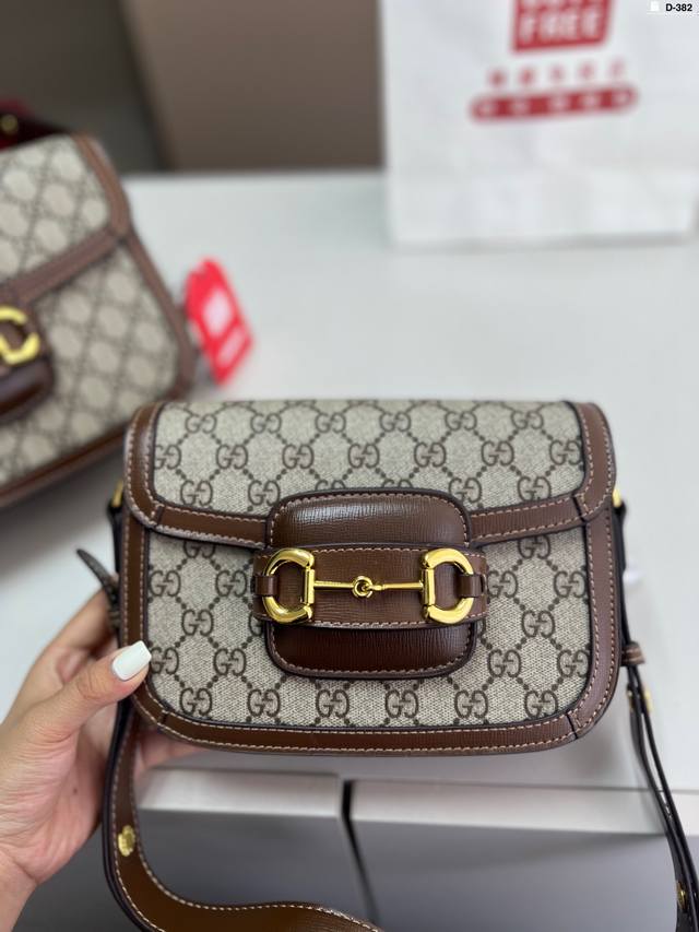 / 小 貌美如花的1955 酷奇Gucci复古马鞍包 经典的马衔扣+Monogram+勾边设计, D-382尺寸21×14 26×18折叠盒