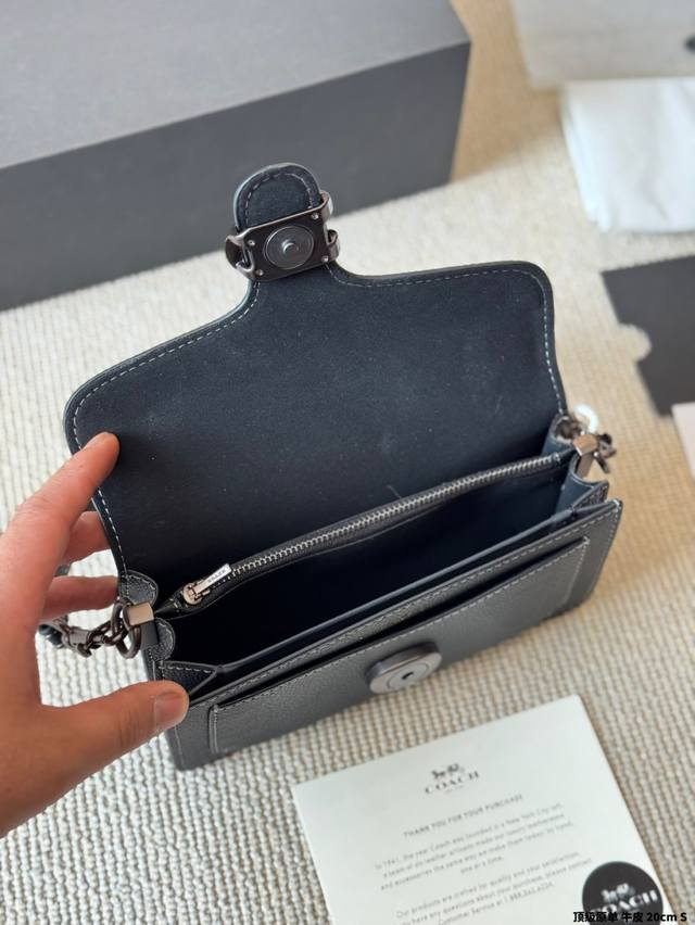 Coach 家酒神包Tabby手提包单肩斜挎包。让小姐姐第一眼看到就会爱上它。被誉为平价版小酒神包的蔻驰Tabby,复古又百搭,很受欢迎啊。五金扣厚实,整体精致小巧,还特别能装。每个包配一长一短两天可卸肩带,内部结构分层合理,中间一个带拉链的隔层小袋,把包分成三格,简直完美尺寸:20Cm。这个尺寸觉得刚刚好合适,手提单肩斜挎都没有问题的!礼盒包装