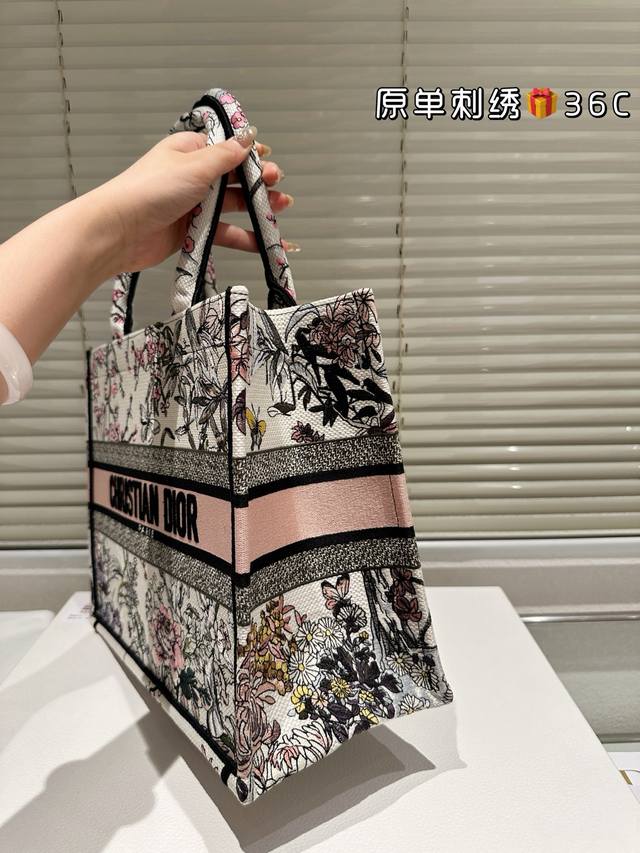 Dior Book Tote今年最喜欢的一款购物袋 Tote我用的次数最多的包,因为容量超级大,不管什么东西都向里面放,当然凹造型也是必须有的,这款Dior老花是我最喜欢的颜色,柜台出了很多颜色及花型,最后挑了这个颜色 小号的精致有型 配折叠礼盒 尺寸42Cm 36Cm 26Cm