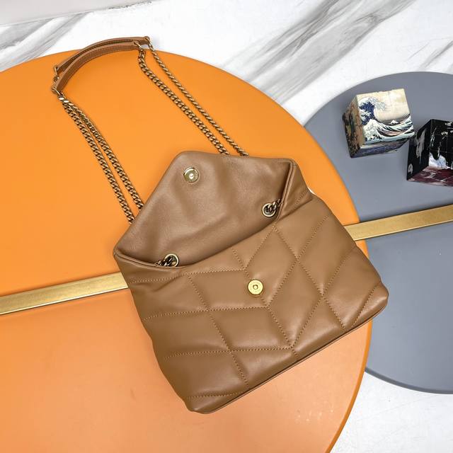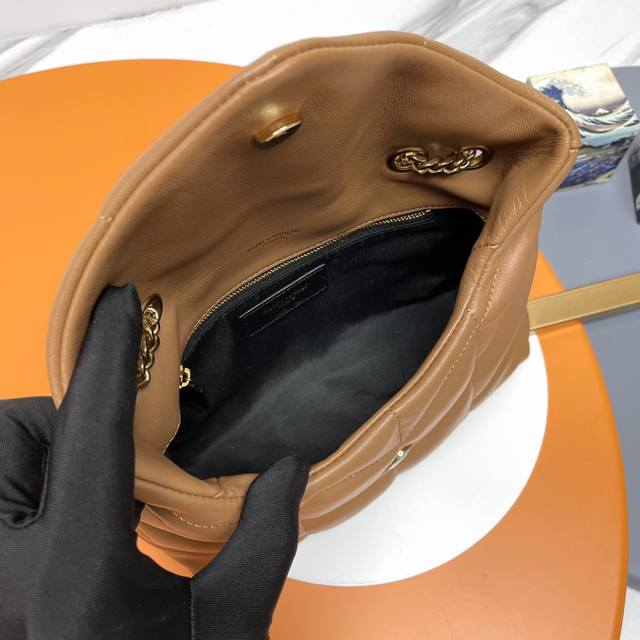 Loulou Puffer Mini_迷你号双链条包来袭!整包采用柔软的意大利小羊皮制作,搭配Y家斜条纹绗缝工艺,拥有柔和质地的前翻盖袋,搭配可拆卸肩带,可以做收纳包,还可以使用调节扣来做腋下包,轻松实现一包多用!