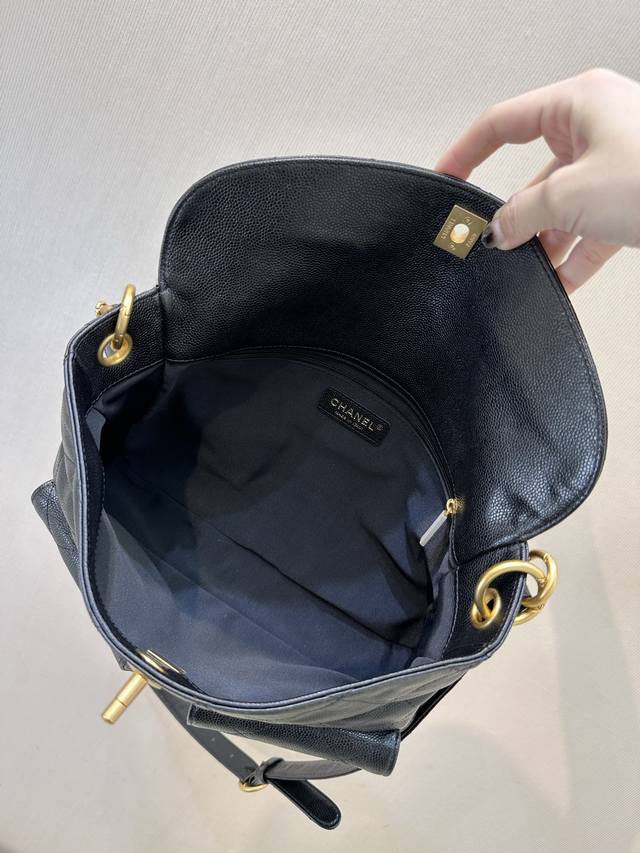 顶级货_ 法国 高端定制品 Chane1 Chanel25S 春夏Hobo抽绳水桶Mini 25Bag 复古金币纽扣抽绳水桶包+菱格纹牛皮 经典链条设计,高级感