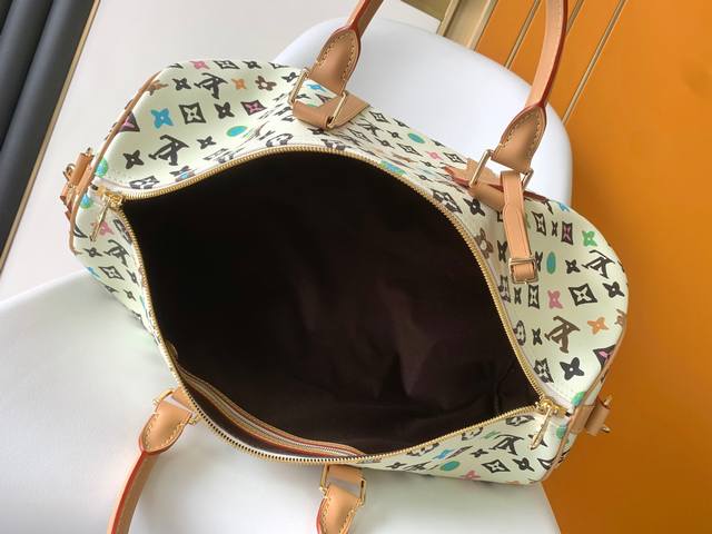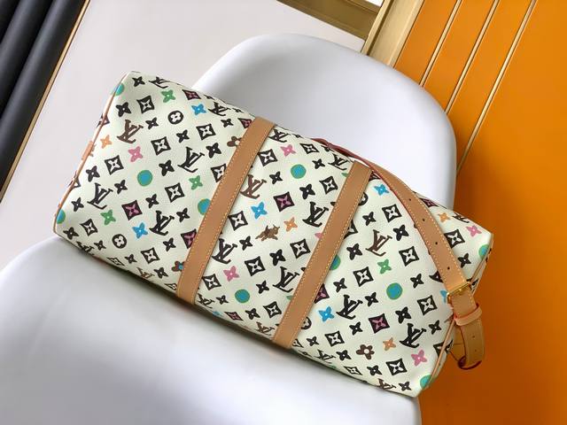 调价 M25233白彩45Cm M24901啡彩50Cm 本款 Keepall BandoulièRe 45 旅行袋采用 Monogram Craggy 帆布,呈现 Tyler 对经典 Monogram 图案的缤纷演绎。可拆卸波浪效果名牌再添雅致细节,辊压皮革顶部手柄和可拆卸并调节的肩带实现灵活背携。45.0 X 27.0 X 20.0 厘米 长 X 高 X 宽