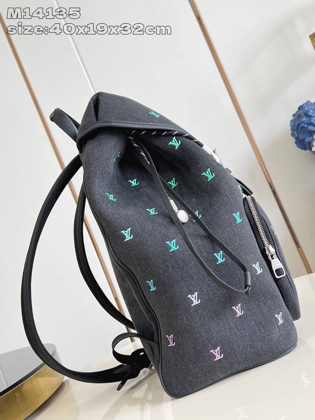 / 出厂价P 顶级原单 M14135 本款 Montsouris 双肩包取材水洗 Lv Blason 丹宁,以深邃色调烘托渐变效果 Lv 字母,展现 Pharrel