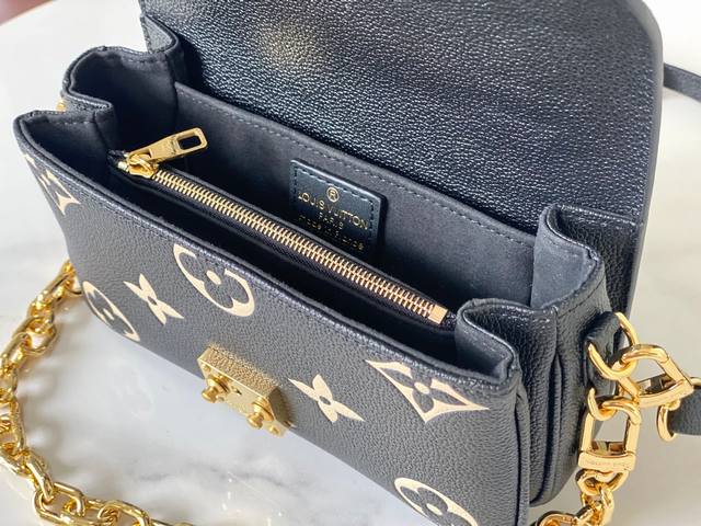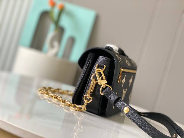 海外原单46595印花两色。本款 Pochette MéTis East West 手袋取材 Monogram Empreinte 压纹皮革,展现品牌风尚与摩登元素的融合。传统 S-Lock 锁扣和可拆卸短链条闪耀金属光泽,精巧构型囊括齐整内里,可调节肩带方便都市畅行。21.5 X 13.5 X 6 厘米 长度 X 高 X 宽