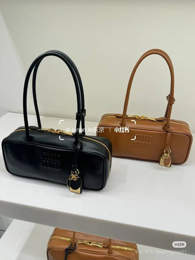 / 配挂件 进口牛皮 Miumiu缪缪 保龄球包 Hobo腋下包 尺寸29.5*9*13.5Cm